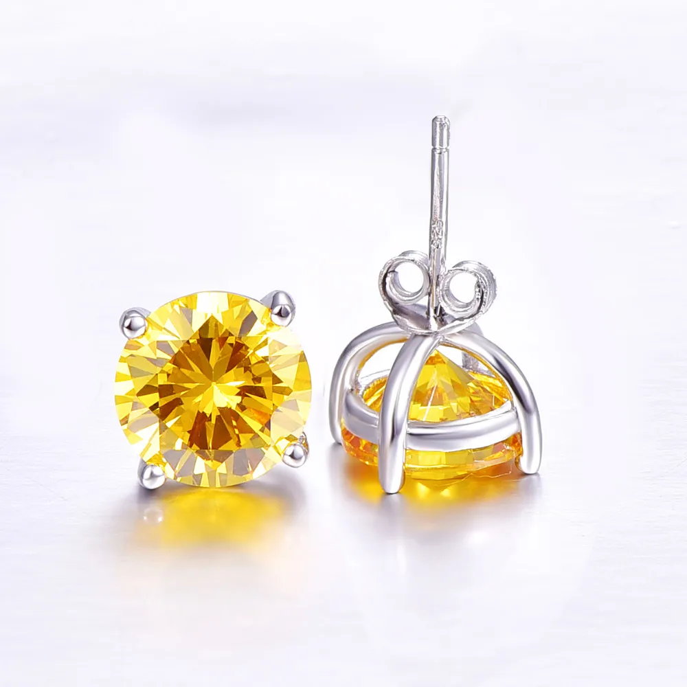 Женские серьги-гвоздики из серебра 925 пробы с натуральным цитрином 6,6 карата