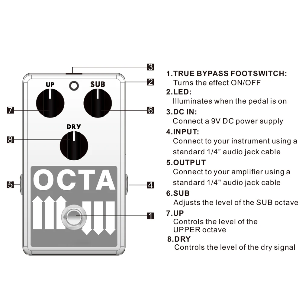 Педаль для электрогитары OCTA, прецизионный полифонический октавный генератор, педаль эффектов, поддерживает SUB UP Octave Dry Signal