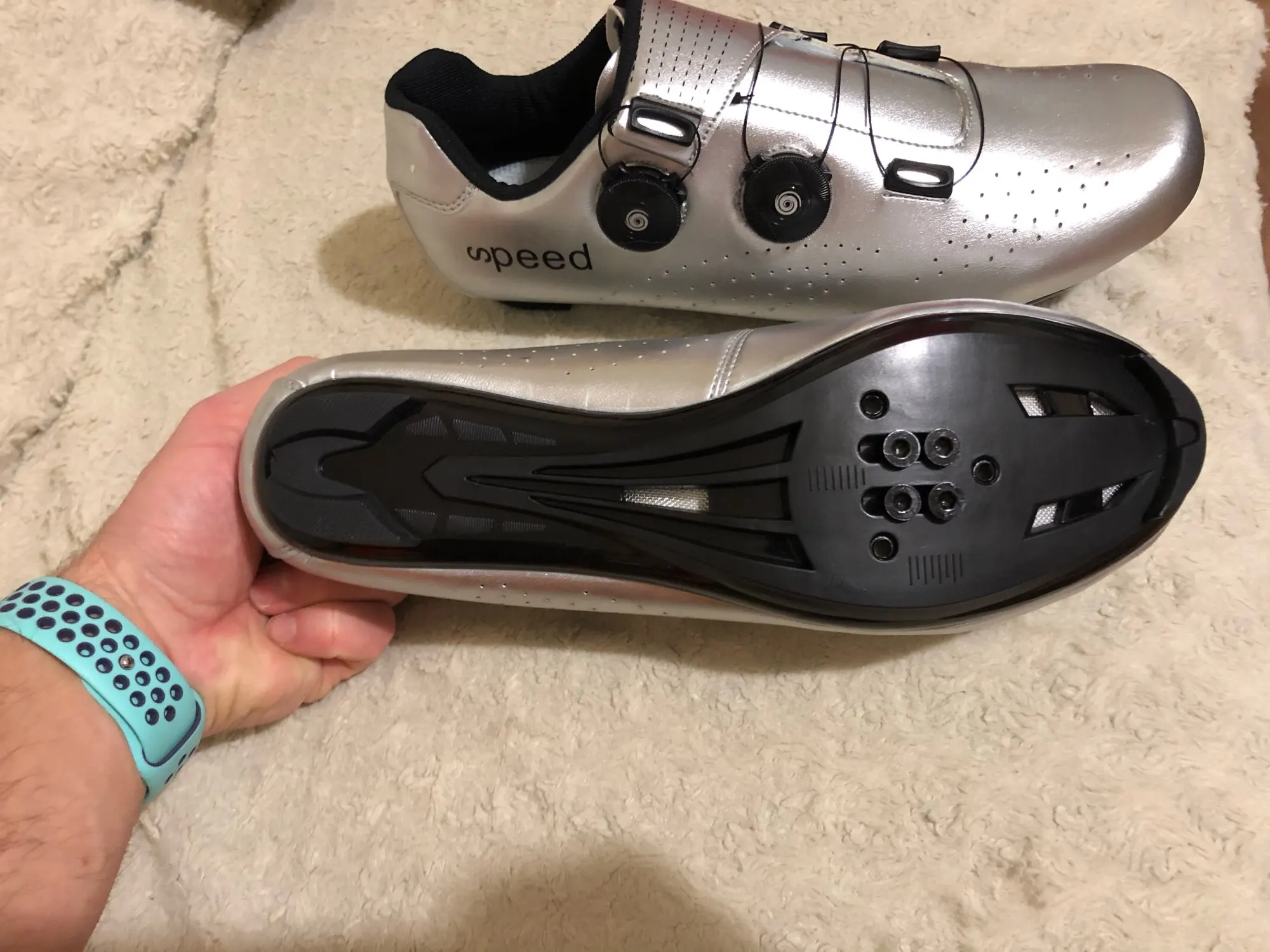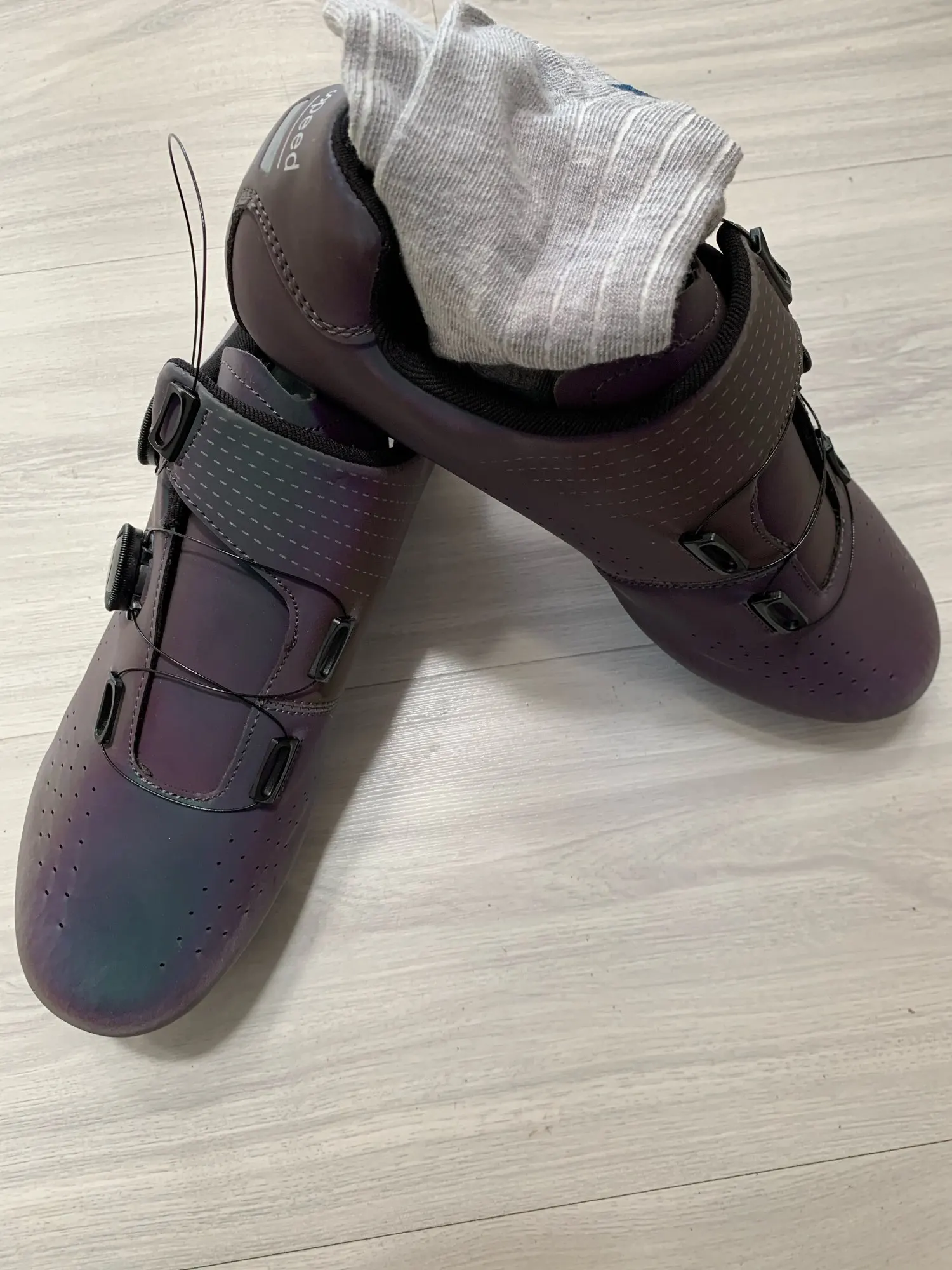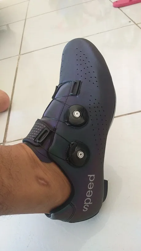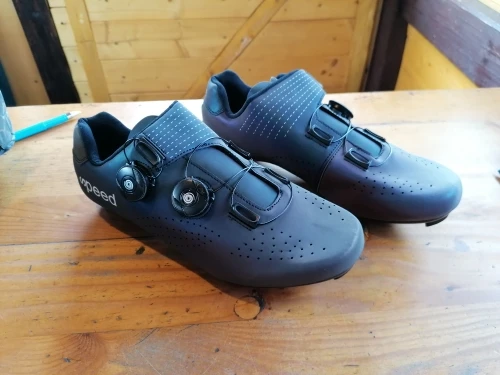 Обувь прибыла в течение 2-3 недель. Материал чехла плотный, матовый и приятный на ощупь. Я бы порекомендовал выбрать на 1-2 размера больше. Подошва довольно мягкая и сгибается намного больше, чем у van rysel 900 из Decathlon. Есть 3 вентиляционные поры на подошве