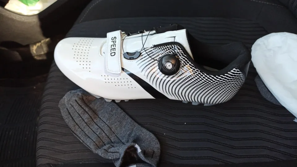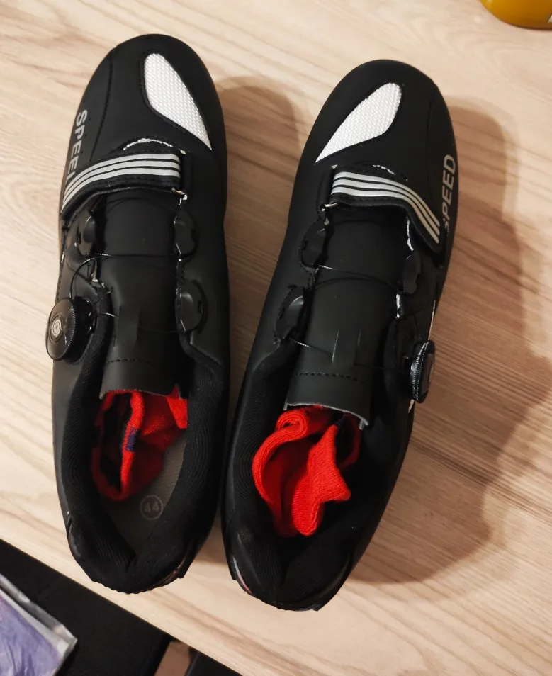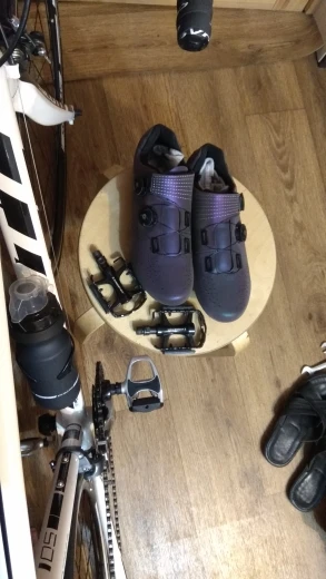 Обувь пришла довольно быстро. После первоначального осмотра все кажется великолепным, они удобны при первом примерке. Поставляется с парой носков (бесплатно). Жду новых педалей, прежде чем я попробую эту обувь.