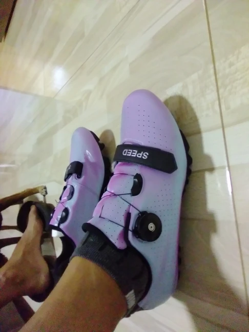Туфли огонь, аналоги стоят в 4 раза больше. Качество супер, застежки вообще шедевр. Только не понял что делать с МТБ болтами, болты убираешь, ставишь шипы шоссе, а МТБ закладные остаются там болтаться, и не как их от туда не вытащить. В целом ботинки шик. Размер подошёл на 41, заказал 42, идеально сидит.