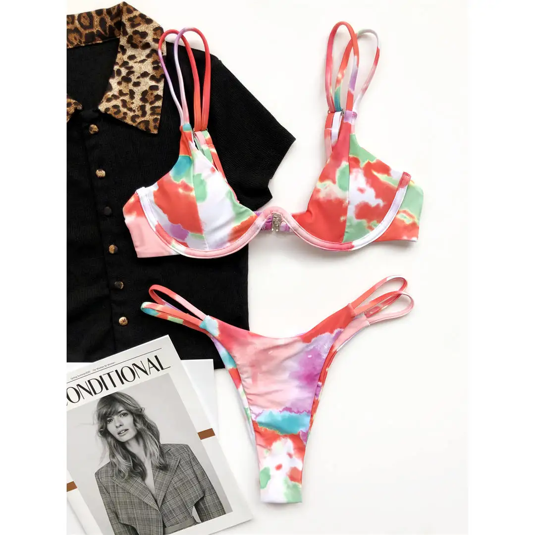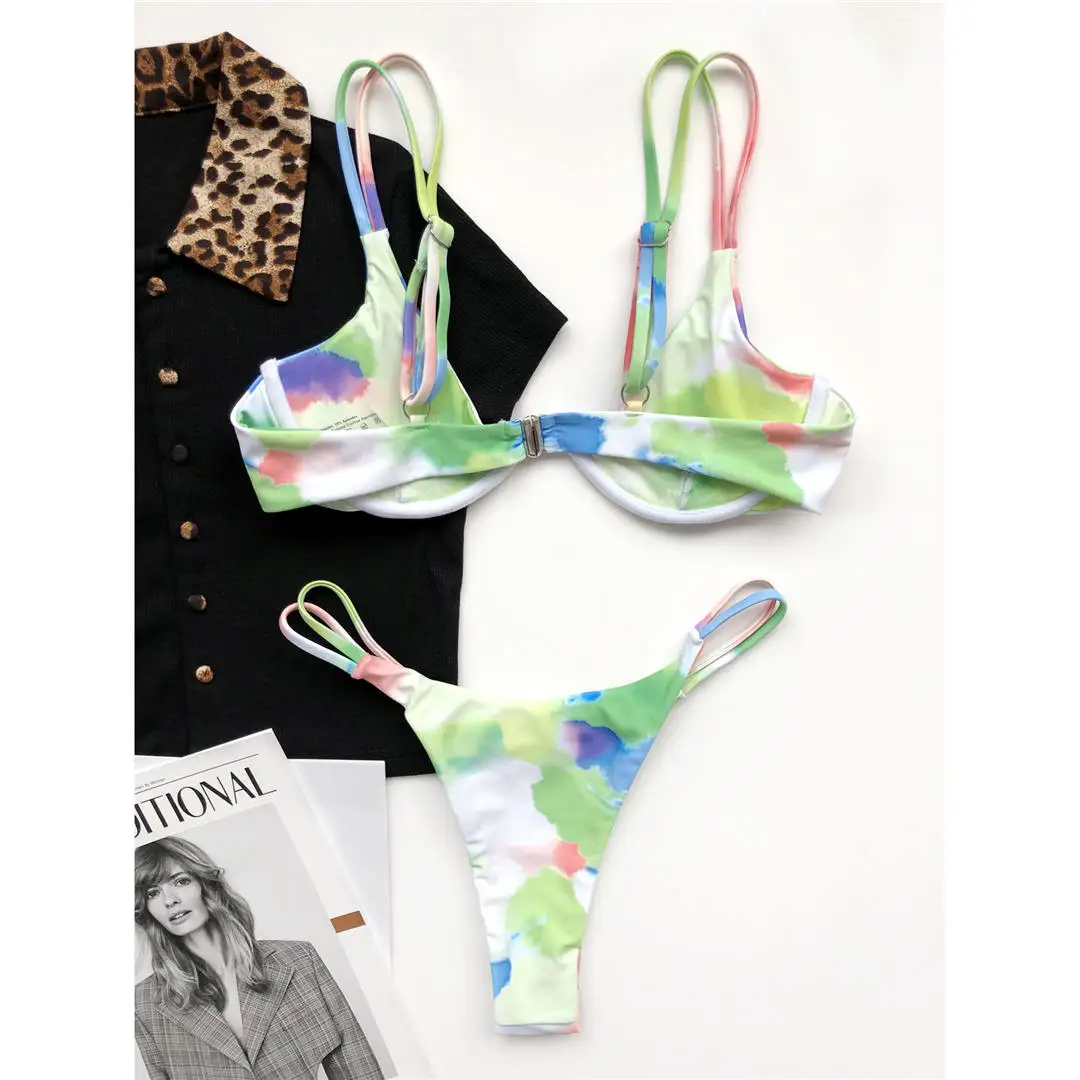 2021 цветочный бикини пуш-ап купальный костюм женский комплект из д...