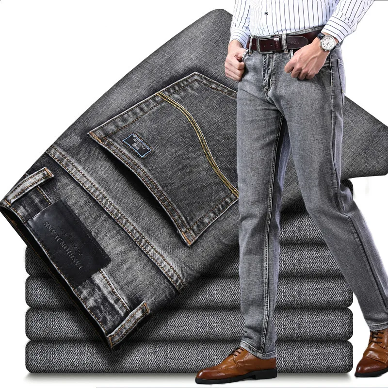 Новые модели утепленных и тонких мужских стрейчевых джинсов, деловые Повседневные Классические Стильные модные джинсовые брюки, черные синие серые брюки