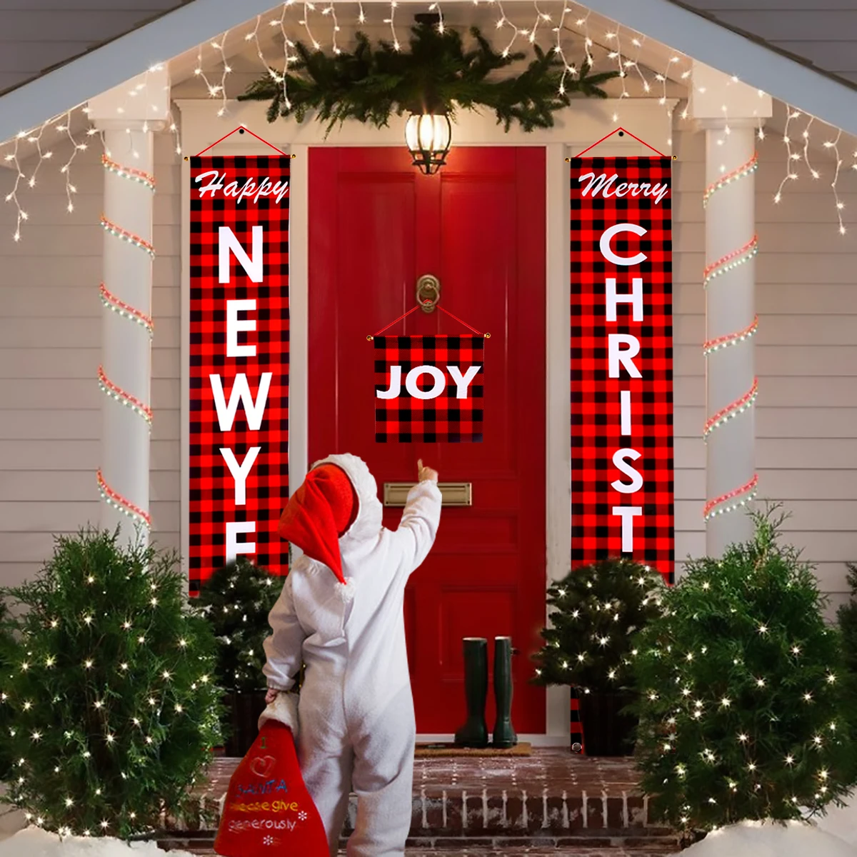 Баннер с Санта Клаусом, эльфом, Рождественские украшения для дома, с новым годом 2022, рождественские подарки, Рождество 2021