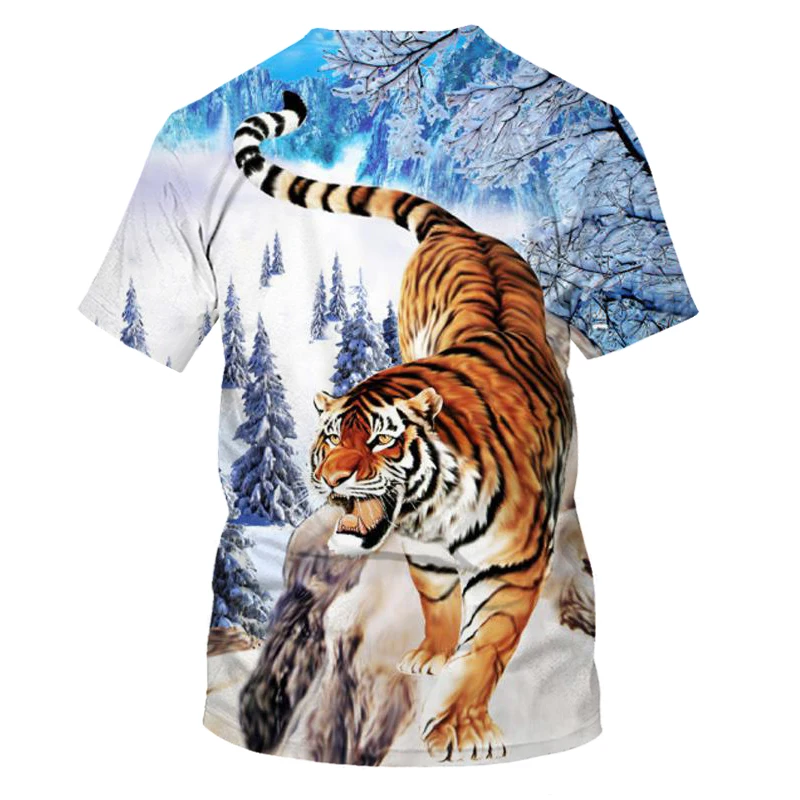 Повседневная футболка с коротким рукавом и 3D-принтом тигра, повсед...