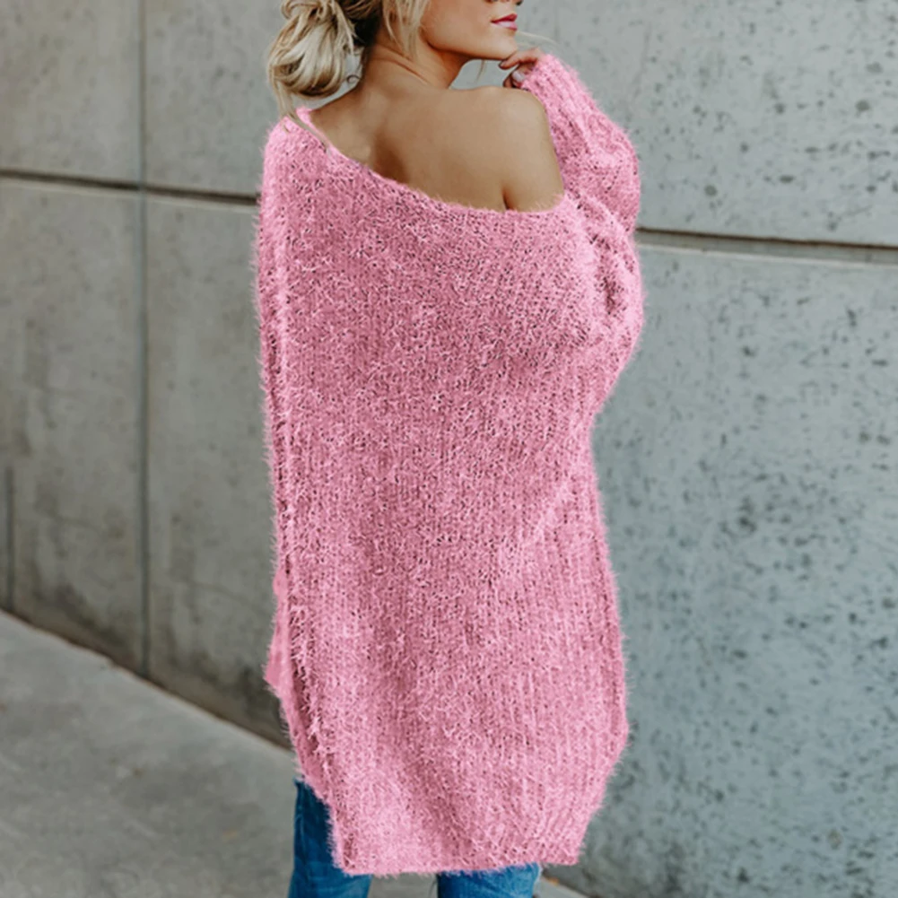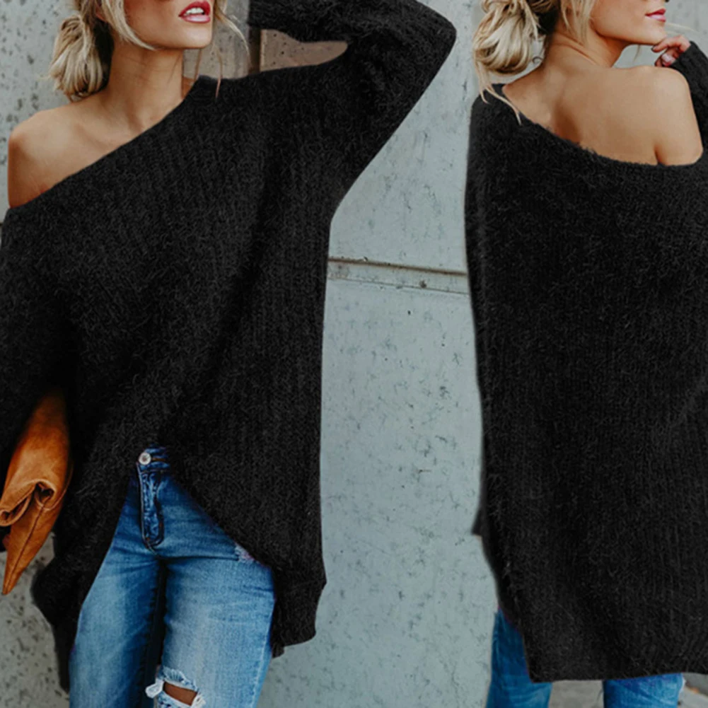 Сексуальный вязаный свитер с открытыми плечами женский однотонный Свободный пуловер с расклешенным рукавом Джемперы женский норковый кашемировый свитер пончо pull femme