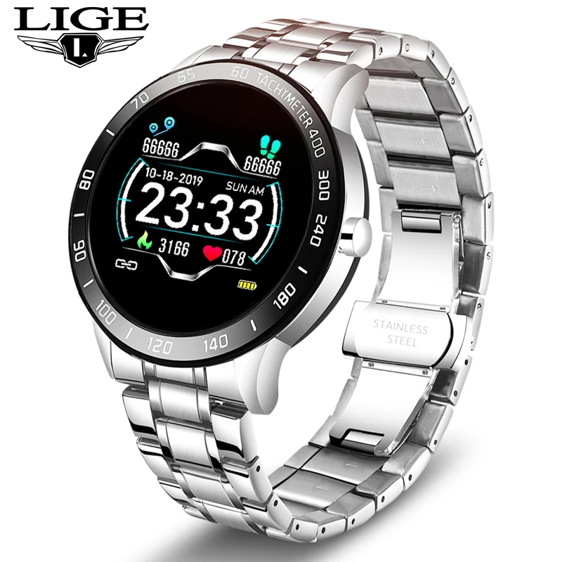 Смарт-часы LIGE мужские со стальным ремешком, водонепроницаемые спо...