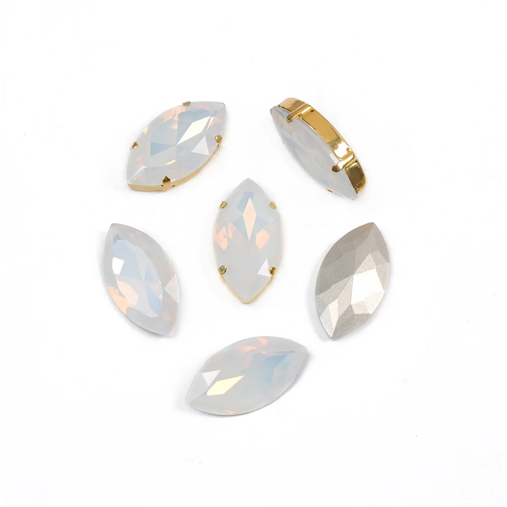 YANRUO 4200 Navette конский глаз белый опал пришитые камни стекло С...