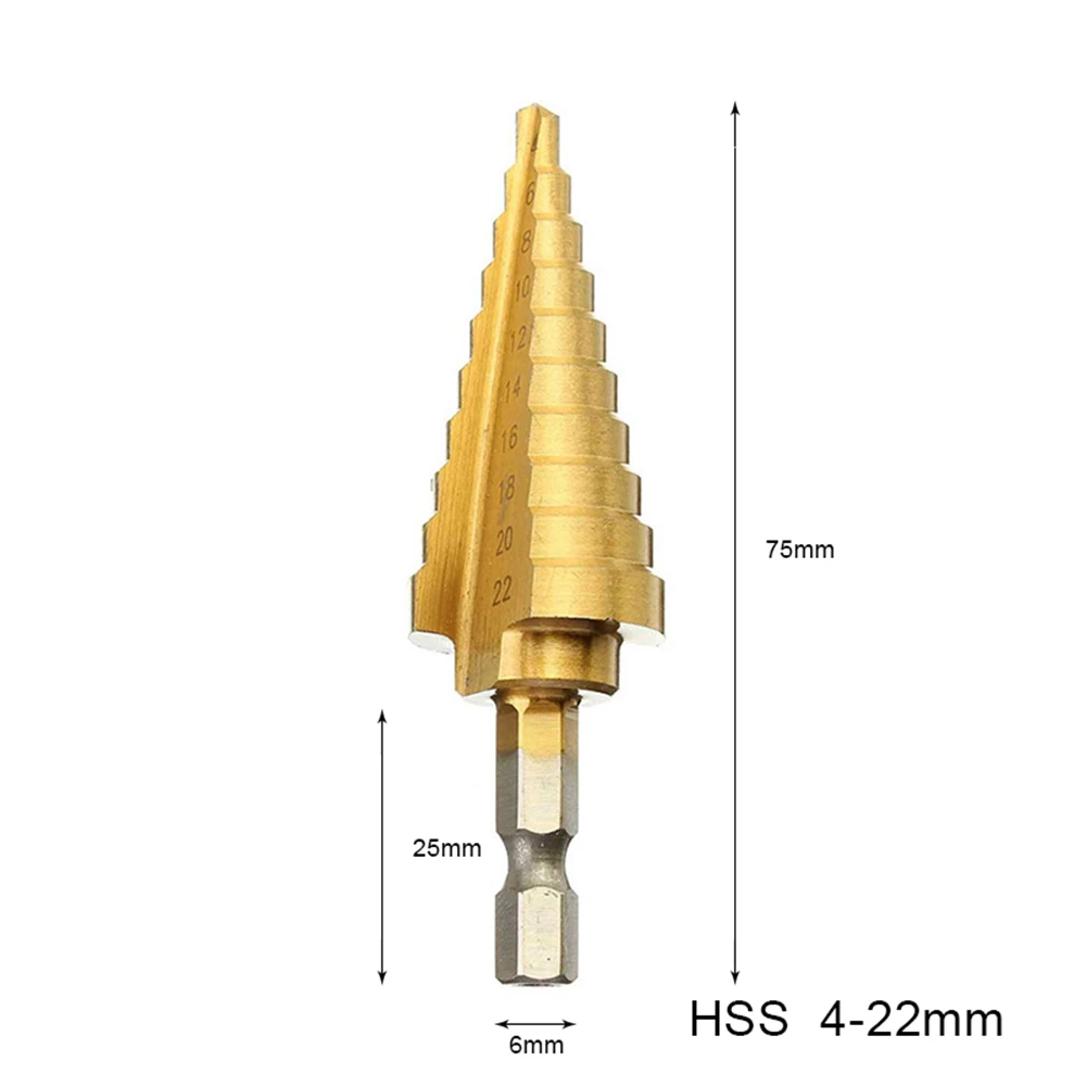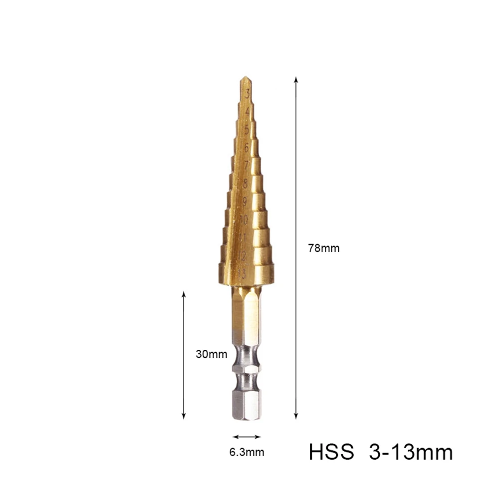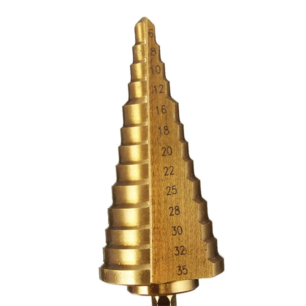 13 ступенчатых высокоскоростных стальных сверл P6M5, 1 шт., 6-35 мм, шестигранный хвостовик, прямое гнездо, титановое покрытие, Набор насадок для дрели