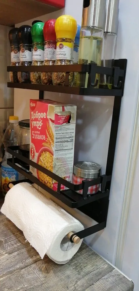 Магнитная стойка для специй, органайзер для холодильника, 1-2 ярусная Магнитная полка для хранения с держателями для бумажных полотенец и 4 крючками, многофункциональнаяТехнические характеристики:Цвет: черныйМатериал: железо1 Размер яруса: 30x11x16 см2 яруса Размер: 30x11x35 смОсобенности:Магнитная полка для специй-Организуйте свои любимые специи и предметы домашнего обихода с этим 2-х уровневые Магнитная Полка для специй и 1 держатель для бумажных полотенец держатель для туалетной бумаги, идеально подходит для хранения и показывает результаты на дисплее холодильникМногоцелевые полки для хранения специй, приправ, небольших банок, шейкеров для соли и перца, оливковых масел, рецептов, приправ, принадлежностей для очистки, туалетных принадлежностей, эфирных масел, лекарств, И многое другое-деревянный Стержень Универсальный для полотенец, обертывания, фольги и т. Д.-съемные крючки для полотенец и легких инструментов для приготовления пищиЛегко повесить-сильное магнитное основание крепится к стороне холодильника, стиральной машины, сушилки и других пространств с магнитной поверхностьюУстраняет беспорядок-мгновенно освобождает счетчик и пространство шкафа-экономит время и хлопот на поиск через зажатые Шкафы Для желаемых ингредиентов и принадлежностей-обеспечивает быстрый доступ к товарам с первого взгляда-прост в использовании во время приготовления пищи или организация кухни, ванная комната или прачечнаяПрочный дизайн-изготовлен из прочной железной конструкции с черной матовой отделкой-гладкие закругленные углы-с сильной магнитной задней частью-салфетки чистятся сухой тканью-банки для специй и продукты не входят в комплект4 крючка-Крючки регулируются, чтобы скользить в том месте, где вы хотите их, и снимаются тожеПосылка:1x магнитный органайзер для холодильника
