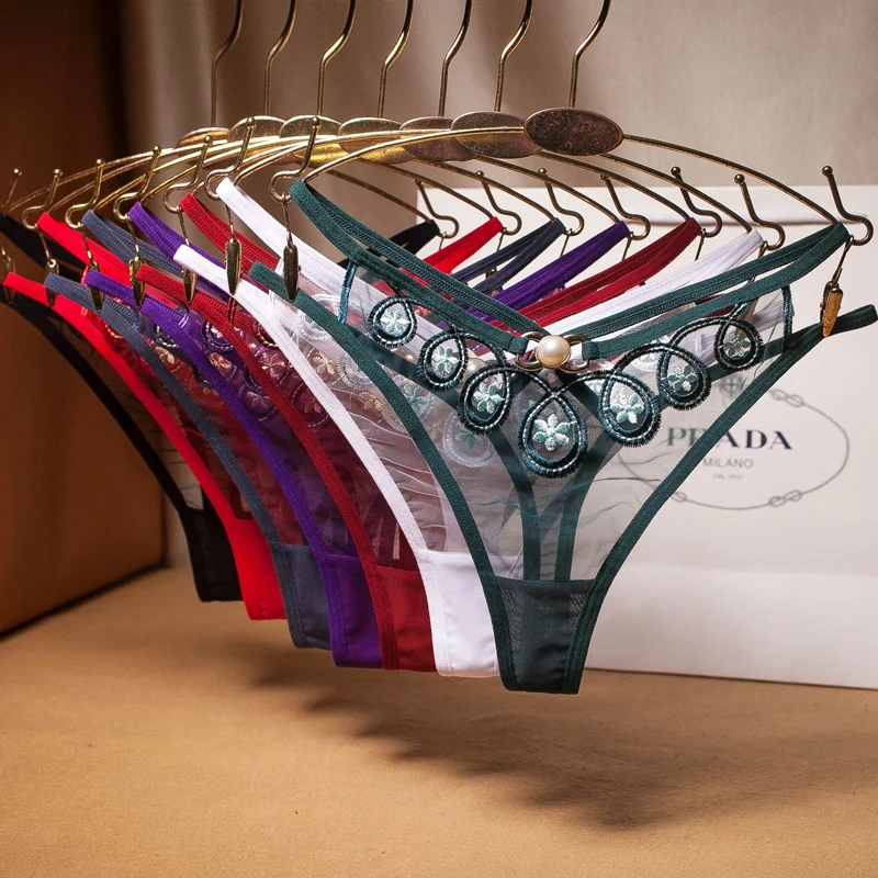 6 шт.Лот, женские Сексуальные Трусики-бикини, женские прозрачные стринги, нижнее белье, стринги с жемчужной вышивкой, Сексуальное белье 2240p6