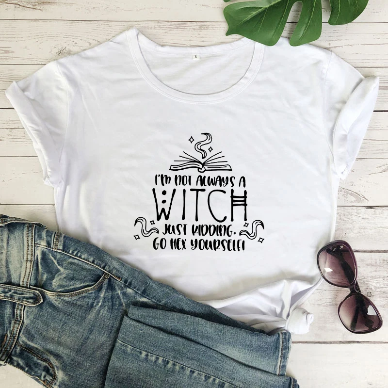 Женская футболка с рисунком ведьмы, забавная футболка из 100% хлопк...