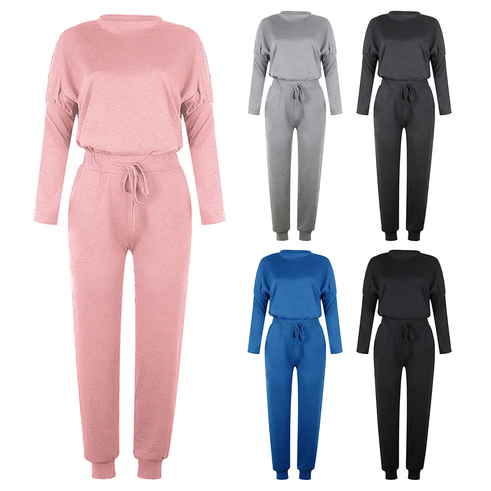 Женская блузка с длинным рукавом и круглым вырезом, топ со шнуровкой и карманами, брюки, спортивный костюм