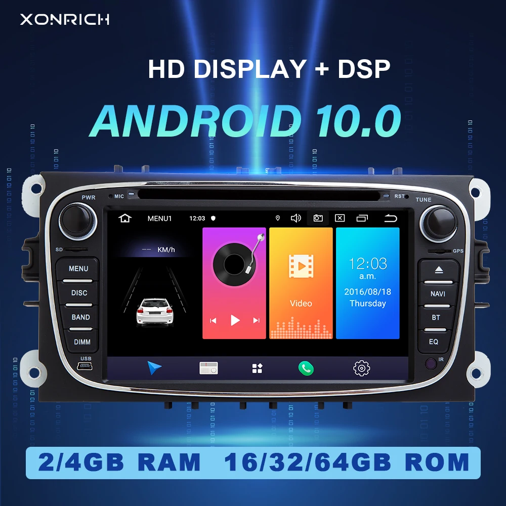2 Din Android 10 Автомобильный DVD радио мультимедиа для Ford Focus...
