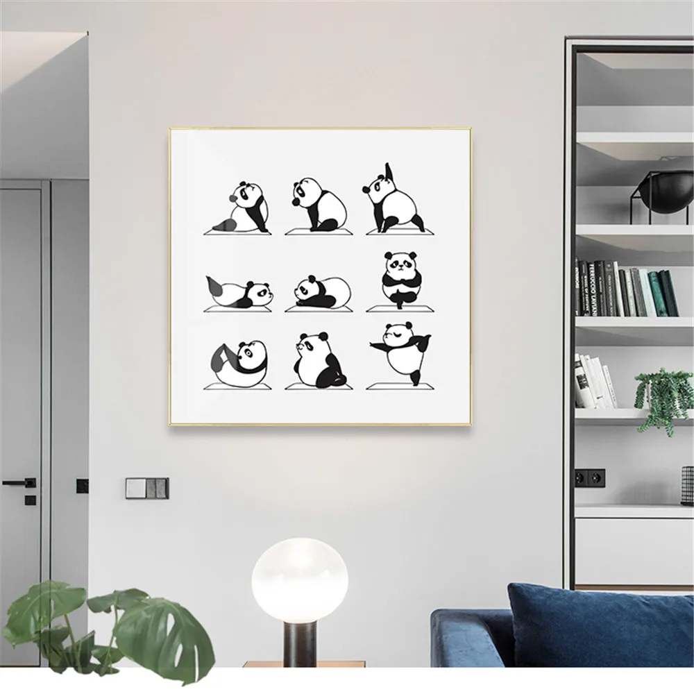 Декоративная картина, панда в минималистском стиле, черно-белая