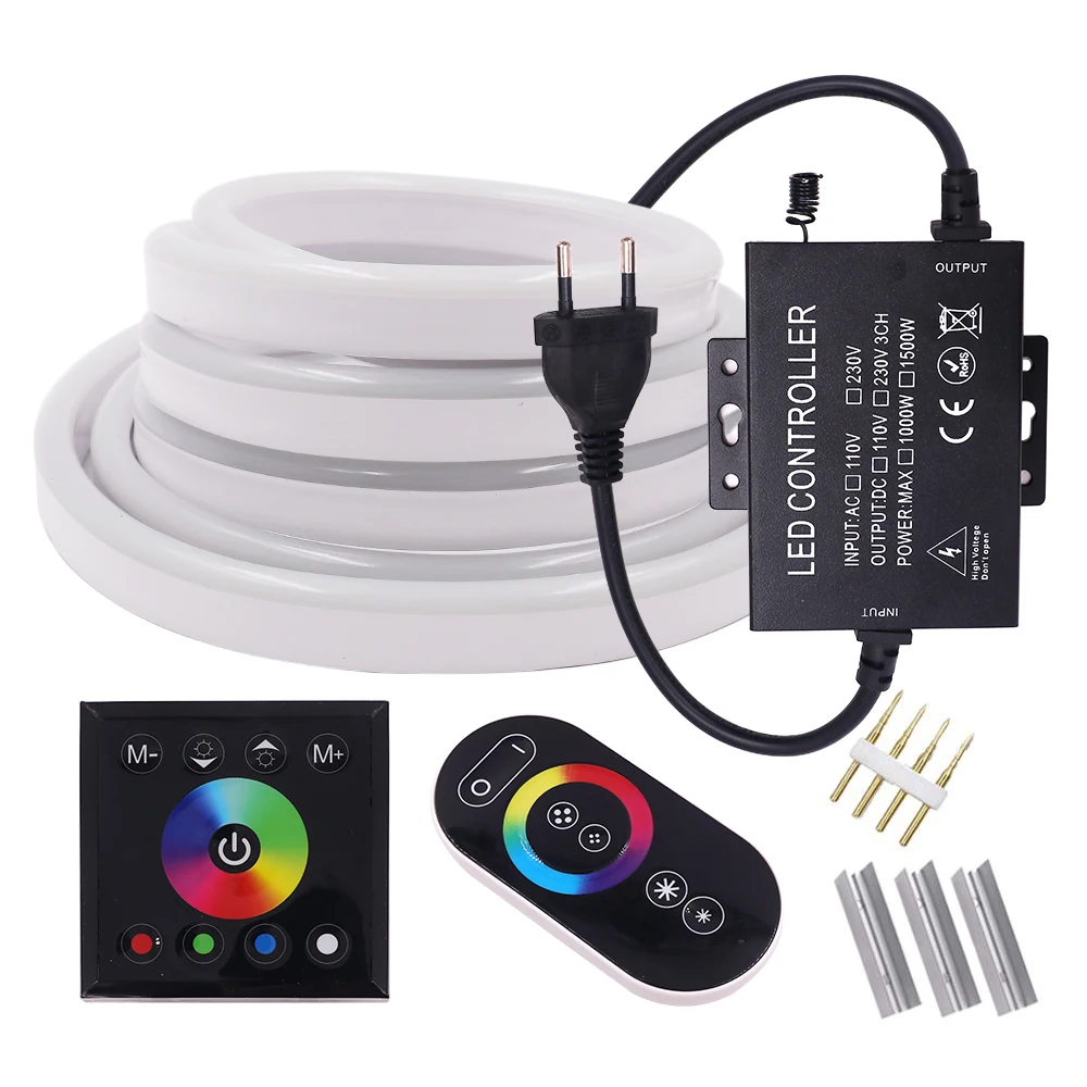 Светодиодная неоновая световая полоса с сенсорным пультом дистанционного управления, 220 В, 110 В, неоновая вывеска, трубчатая лампа, радужная светодиодная лампа, украшение дома, RGB, теплый белый, холодный белый