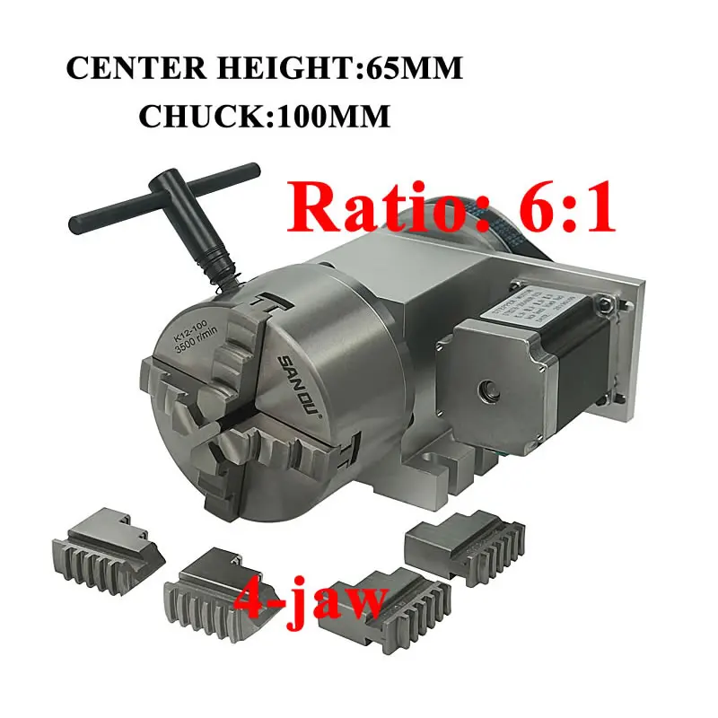 Патрон для роторной оси с ЧПУ, 4 кулачка, 100 мм, 65 мм, передаточное число 6:1, 4-я ось A aixs для фрезерного станка с ЧПУ
