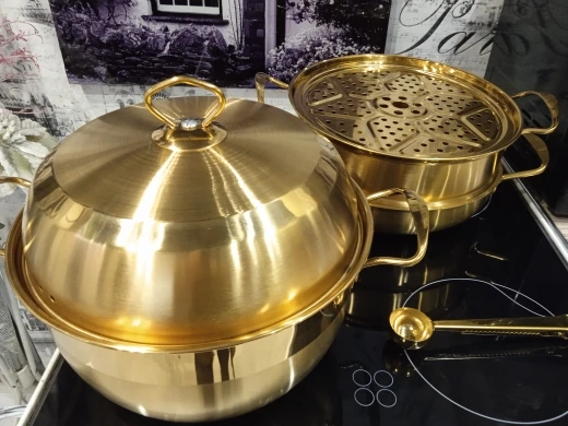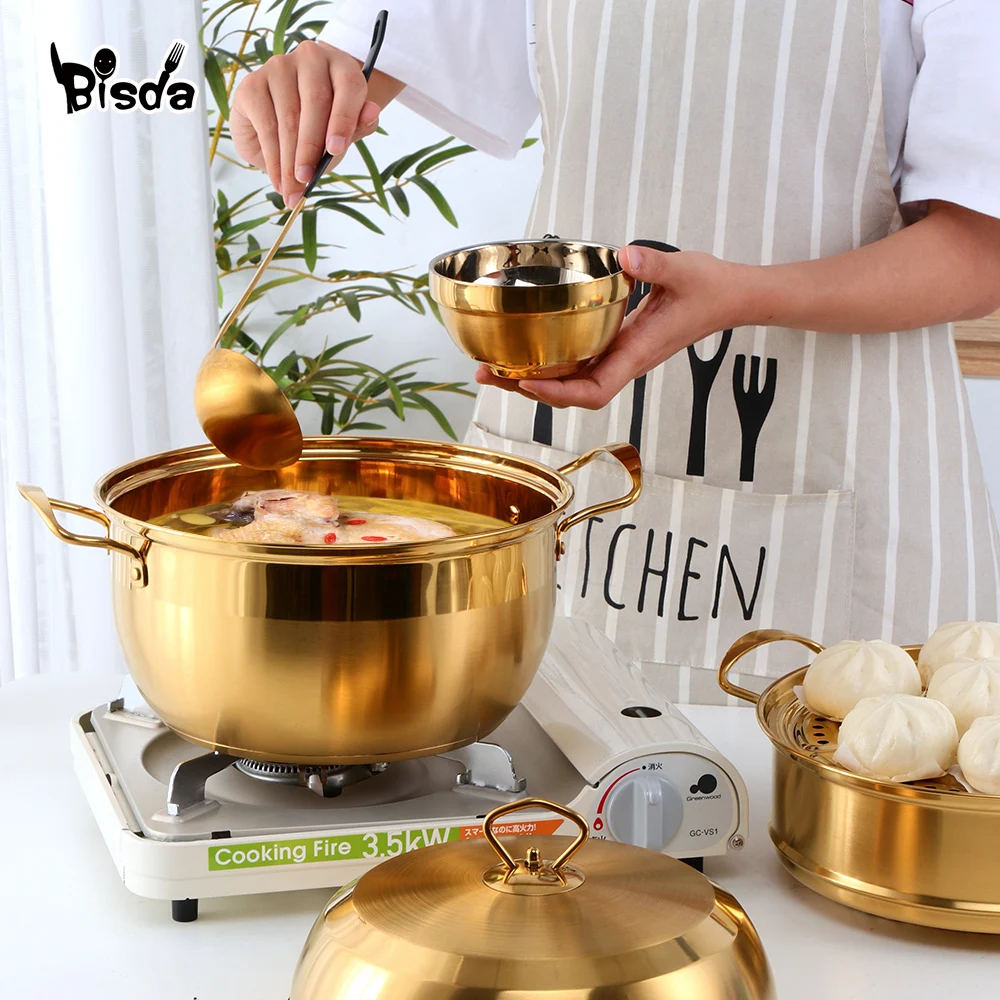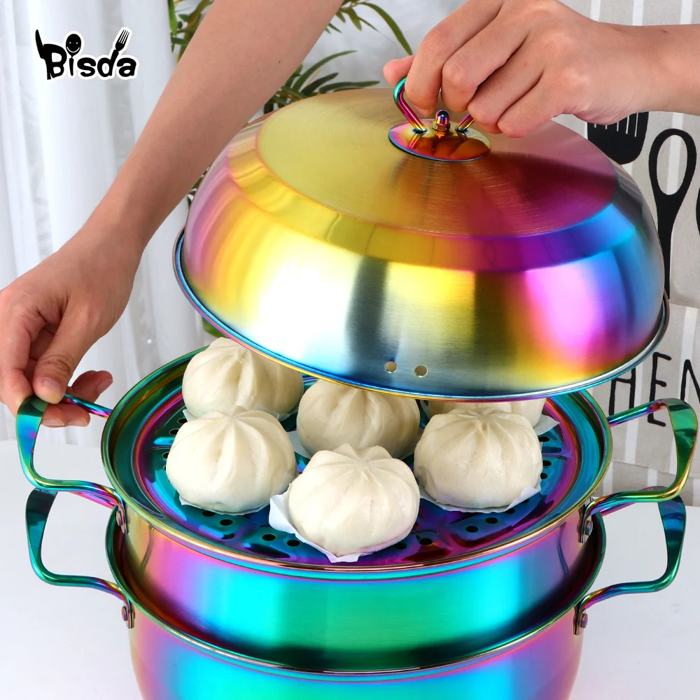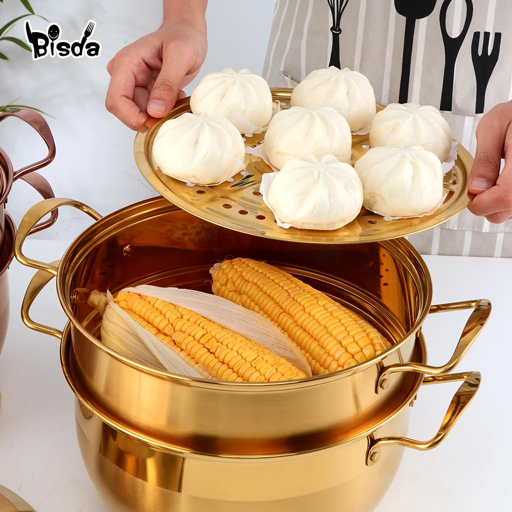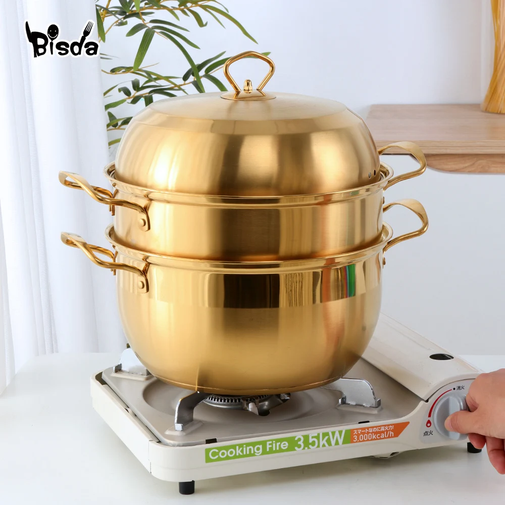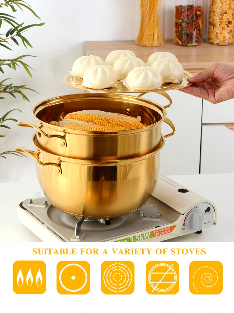 3-х уровневая Пароварка, кастрюля из нержавеющей стали, пароварка, плита, Золотая посуда, инструменты для бойлера, кастрюля для супа, кастрюли для приготовления пищи, газовая плита