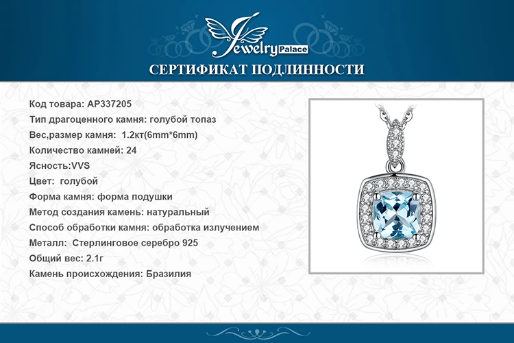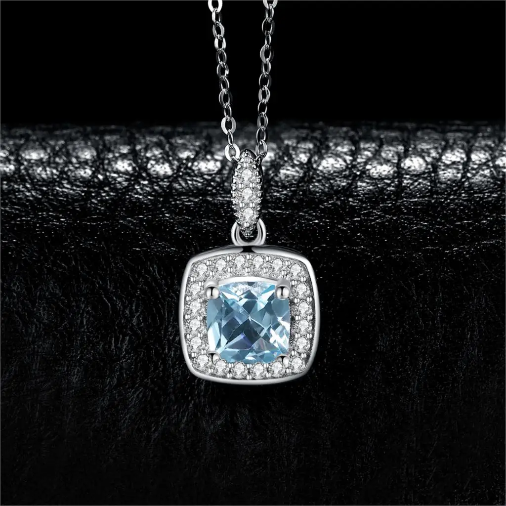 Подвеска с натуральным голубым топазом JewelryPalace, ожерелье из стерлингового серебра 925 пробы, подвеска с драгоценным камнем ореола для женщин, ювелирное изделие без цепочки
