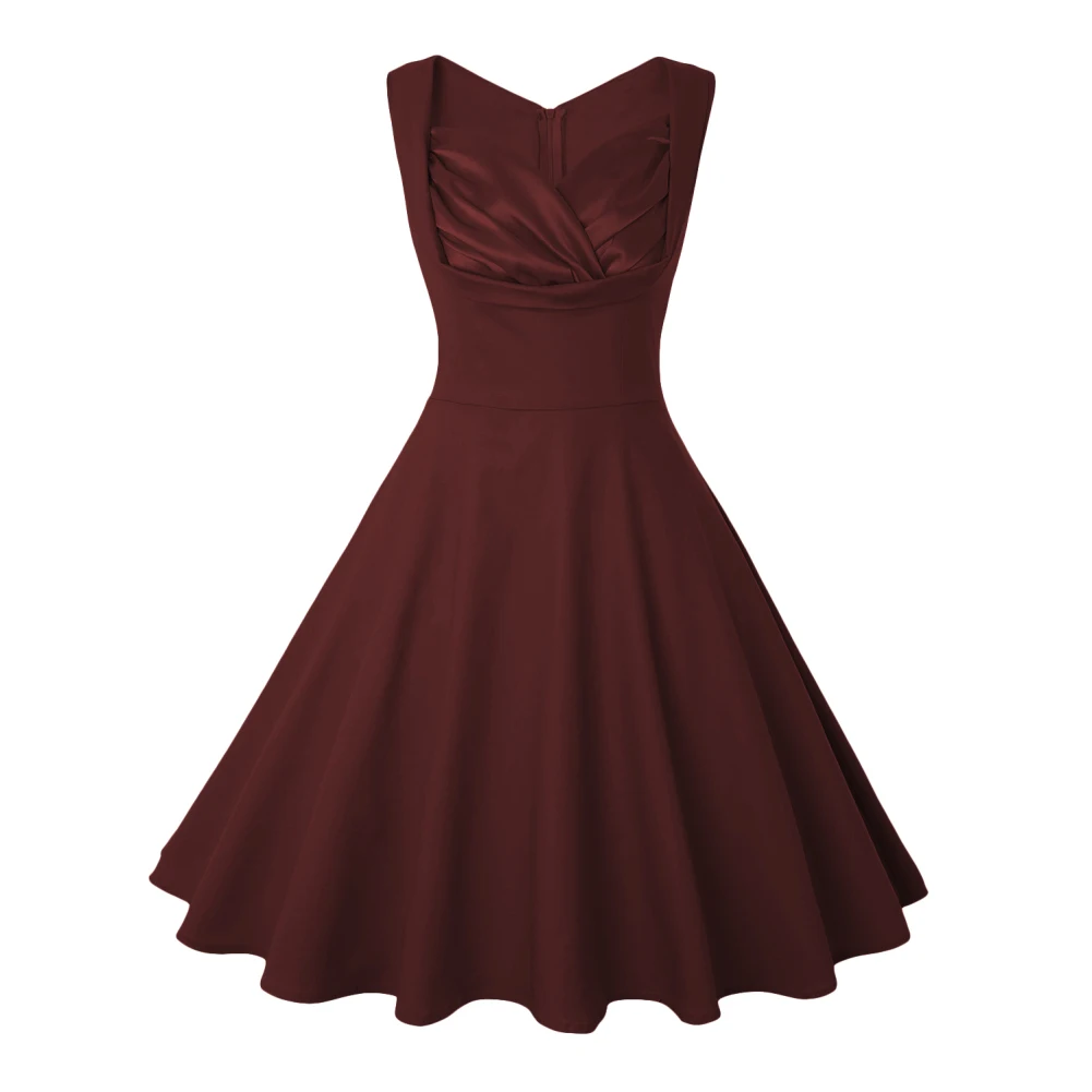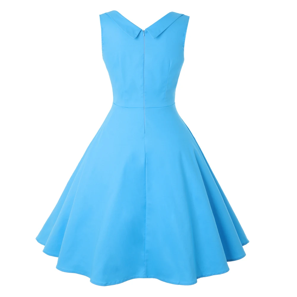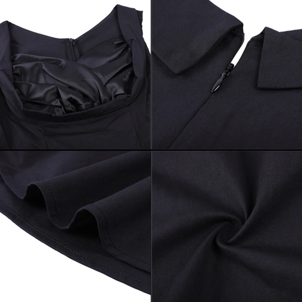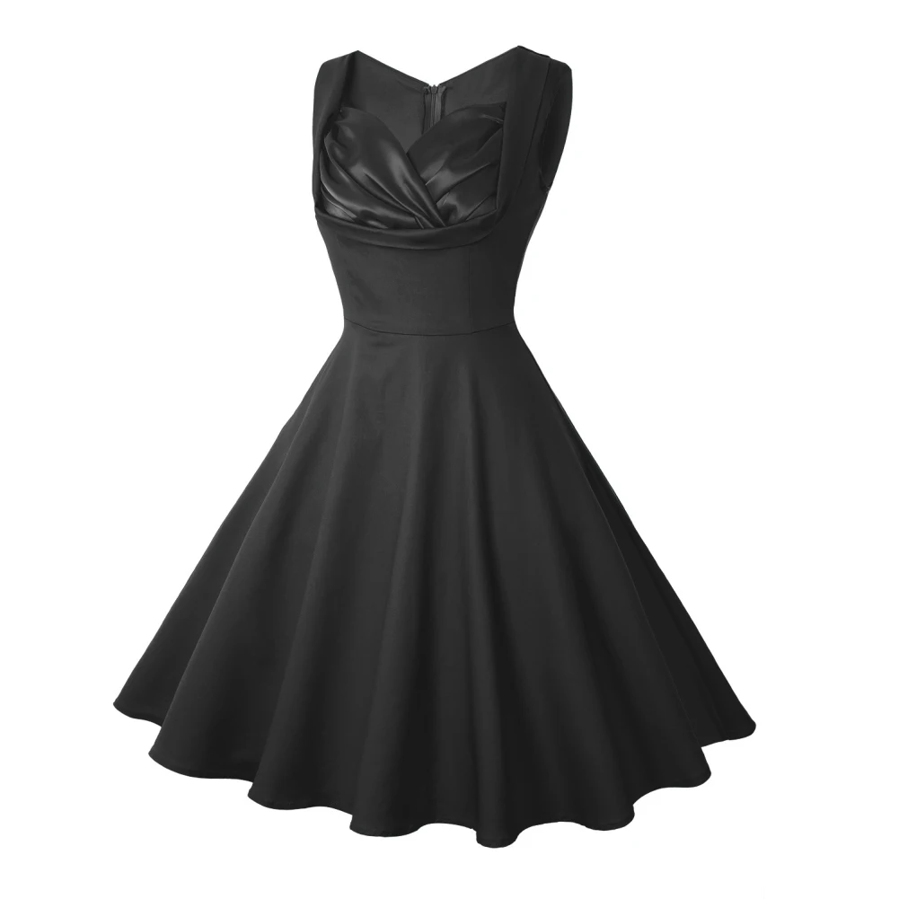 Женское винтажное платье с пышной юбкой, черное платье средней длины с V-образным вырезом, пышной юбкой в стиле ретро, элегантная модель для офиса и вечеринок, на лето