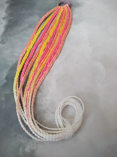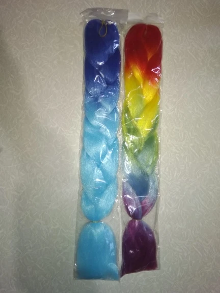 отличный материал! заказываю не первый раз. единственное не все цвета одинаково обработаны. например жёлтый вообще не прогофрирован, очень гладкий. но для меня не проблема, все равно предпочитаю гофрировать перед заплетением. фото того, какие красивые косы получаются)