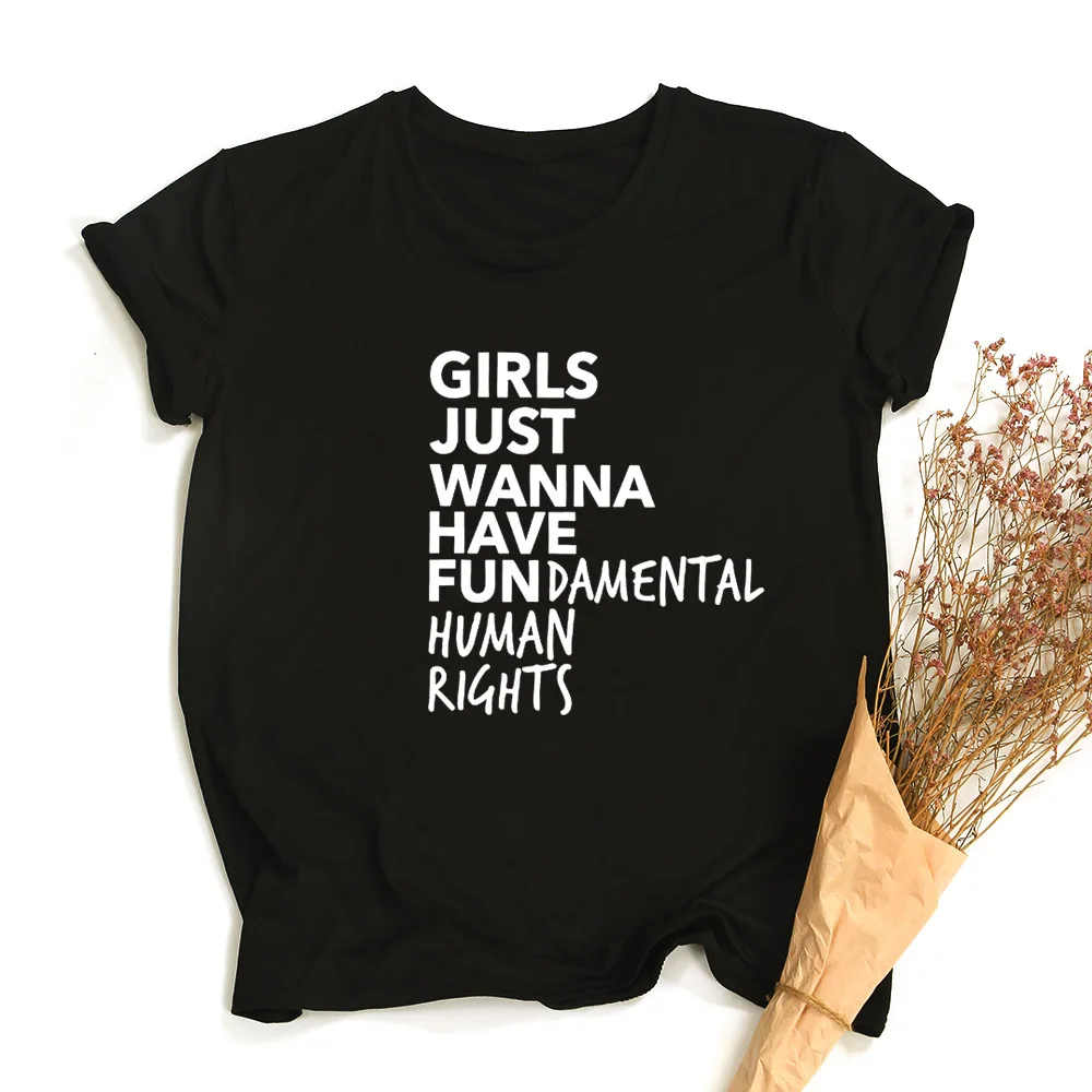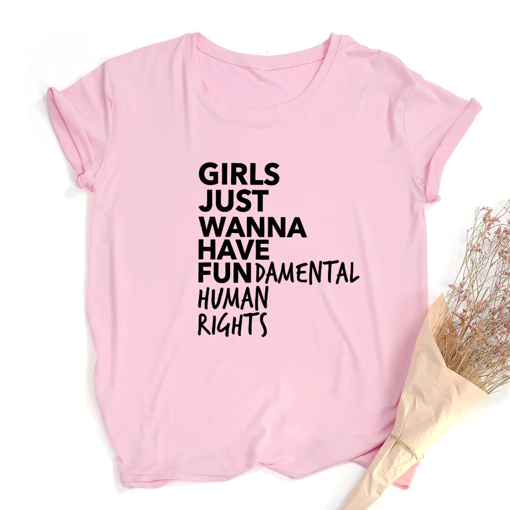 Женские футболки для девочек, футболка с надписью «Just Wanna Have Fundamental Human Rights», летние футболки с короткими рукавами, Tumblr