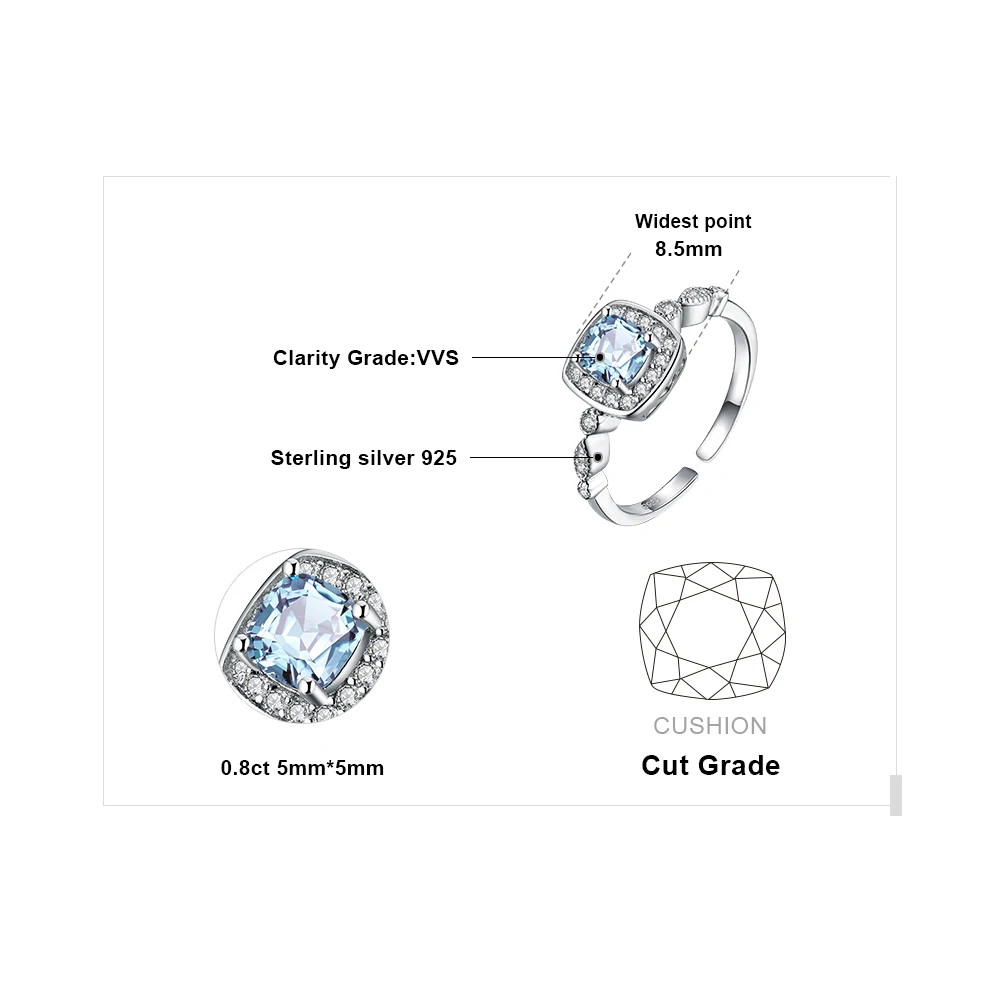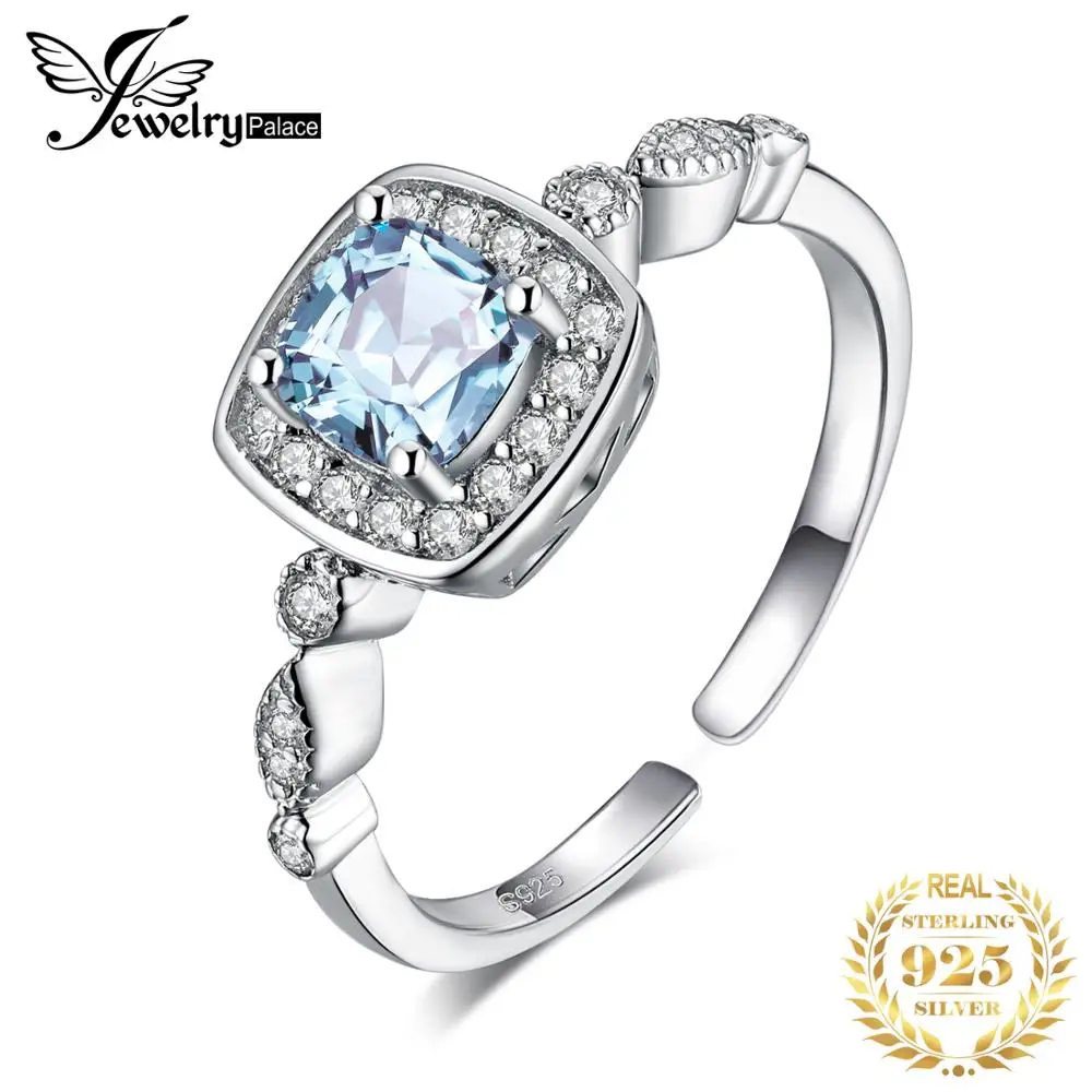 Женское кольцо с голубым топазом JewelryPalace, серебряное открытое регулируемое обручальное кольцо с 925 пробы