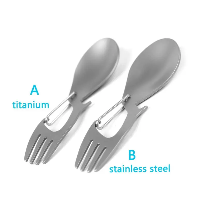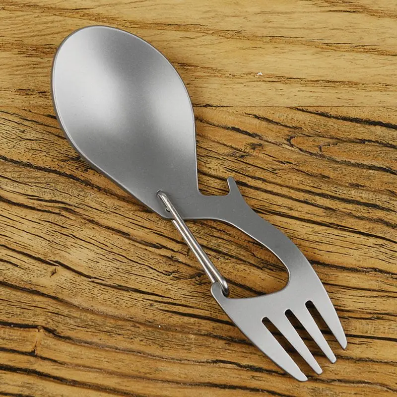 Титан Кемпинг посуда, вилка, ложка открывалка для бутылок Пикник на ремне с пряжкой, инструмент для использования на природе