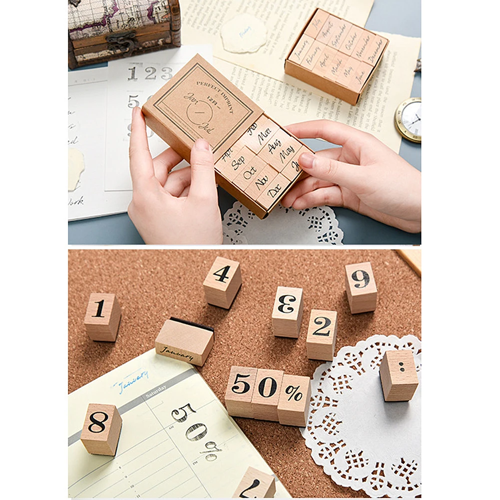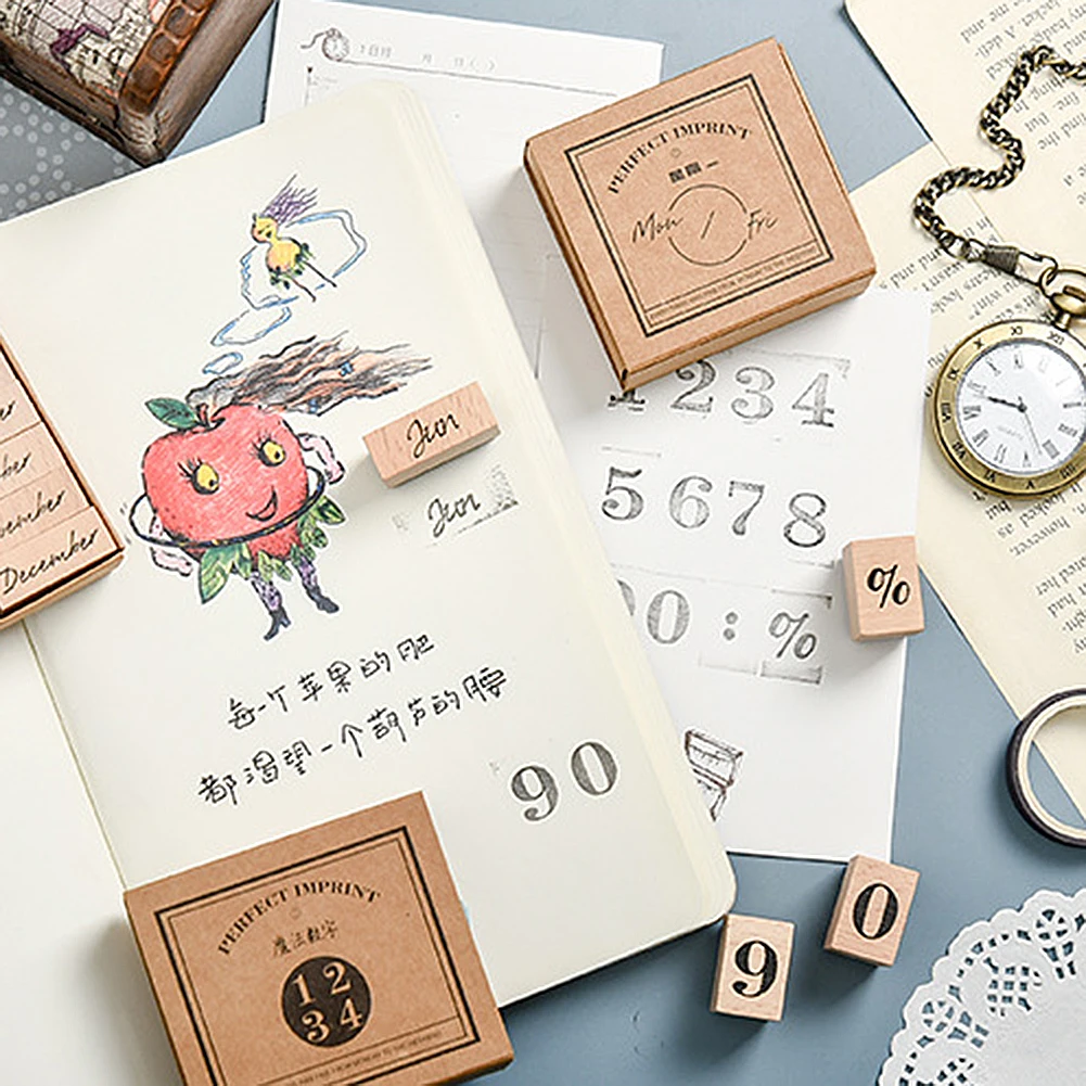 Винтажные деревянные резиновые цифры, английский месяц, неделя, стандартный декор, месячные недели, декоративные цифры, штампы, штампы