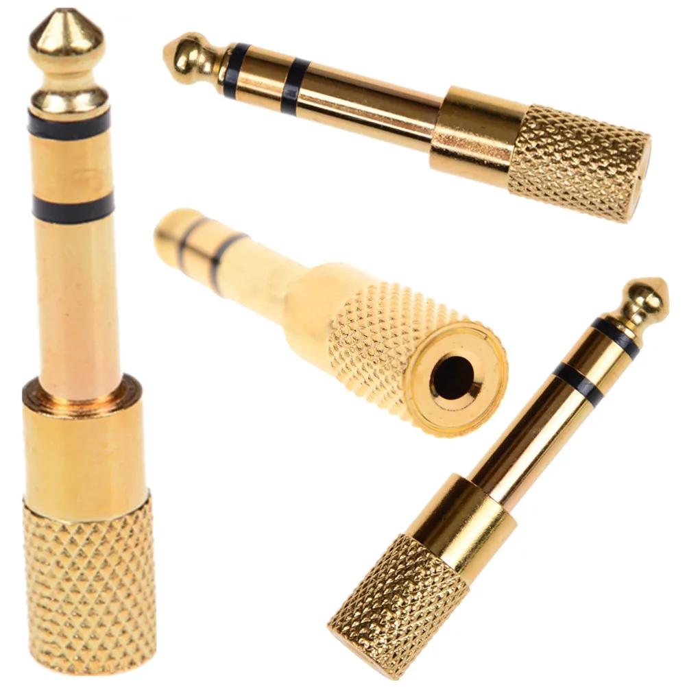 1 шт. адаптер 3,5 мм на 6,35 мм штекер 3,5 к 6,35 разъему стерео аудио адаптер для микрофона наушников кабель AUX Золотой аудио адаптер