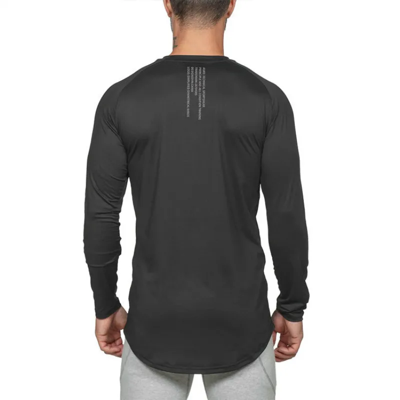 Дышащая футболка для тренажерного зала и фитнеса, мужской спортивный Топ с длинным рукавом, футболка для бега, тренировочная толстовка, Спортивная мужская рубашка с круглым вырезом