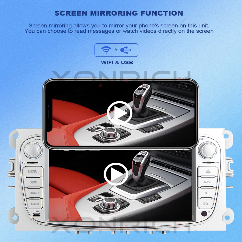 Для Ford Focus II (2008,2009,2010,2011) / Mondeo (2007,2008,2009,2010,2011) / C-Max (2008,2009,2010,2011) / S-Max (2008,2009,2010,2011) (Пожалуйста, проверьте размеры заранее) / Galaxy II (2006,2007,2008,2009,2010,2011) (Пожалуйста, проверьте размеры заранее) / Kuga (2008,2009,2010,2011,2012) (Пожалуйста, проверьте размеры заранее) fordTransit Connect 2010Лицевая панель: 225*120 мм* Хотя мы приложили все усилия, чтобы обеспечить совместимость этого устройства с перечисленными автомобилями, перед покупкой проверьте год, размеры и форму центральной панели вашего автомобиля.