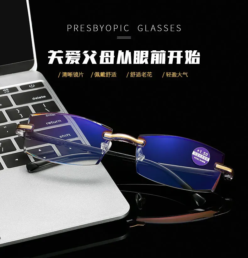 Очки для чтения с бриллиантовой огранкой, корейские безрамочные очки с покрытием, с защитой от сисветильник, мужские очки серые, мужские очки Роскошные очки-люнет Vasos 2020