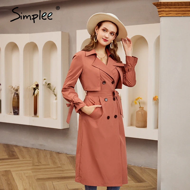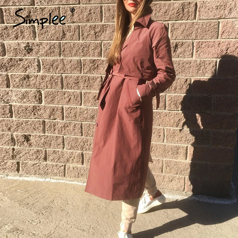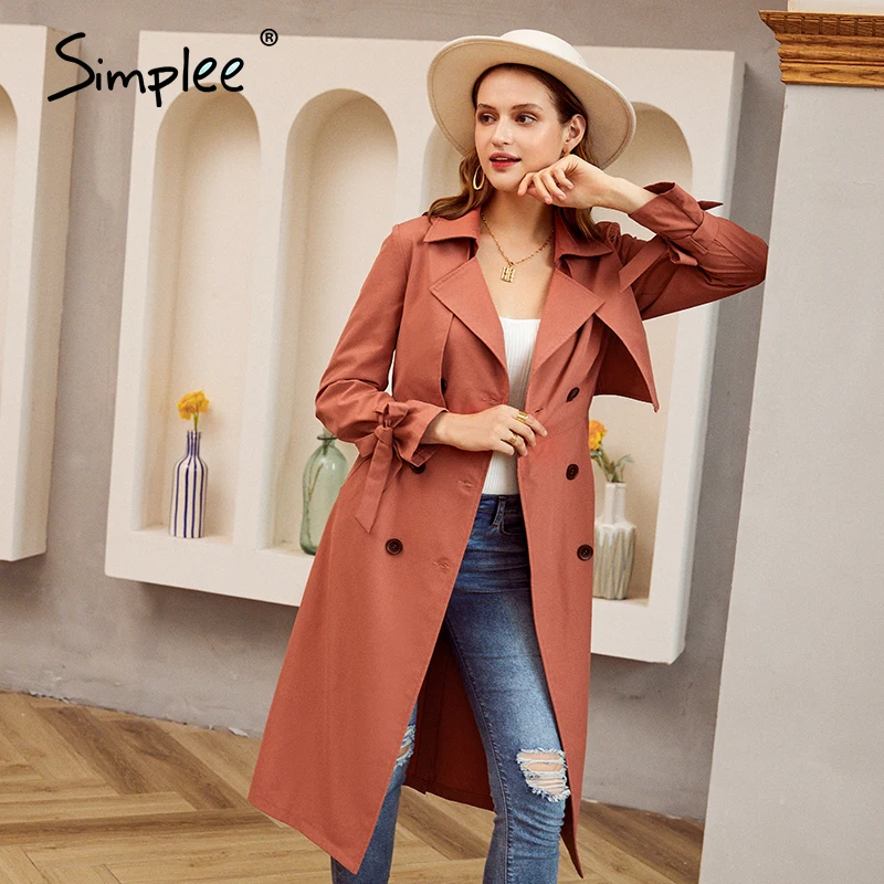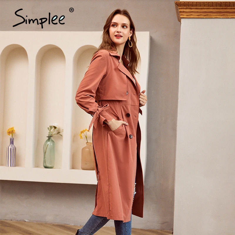 Тренчкот женский длинный на пуговицах, с V-образным вырезом и карманами, 2020