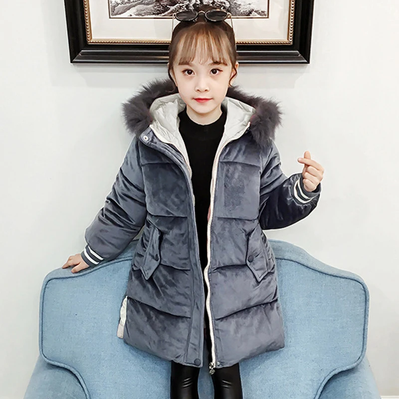 Зимнее пальто с искусственным мехом для девочек, детская модная теп...
