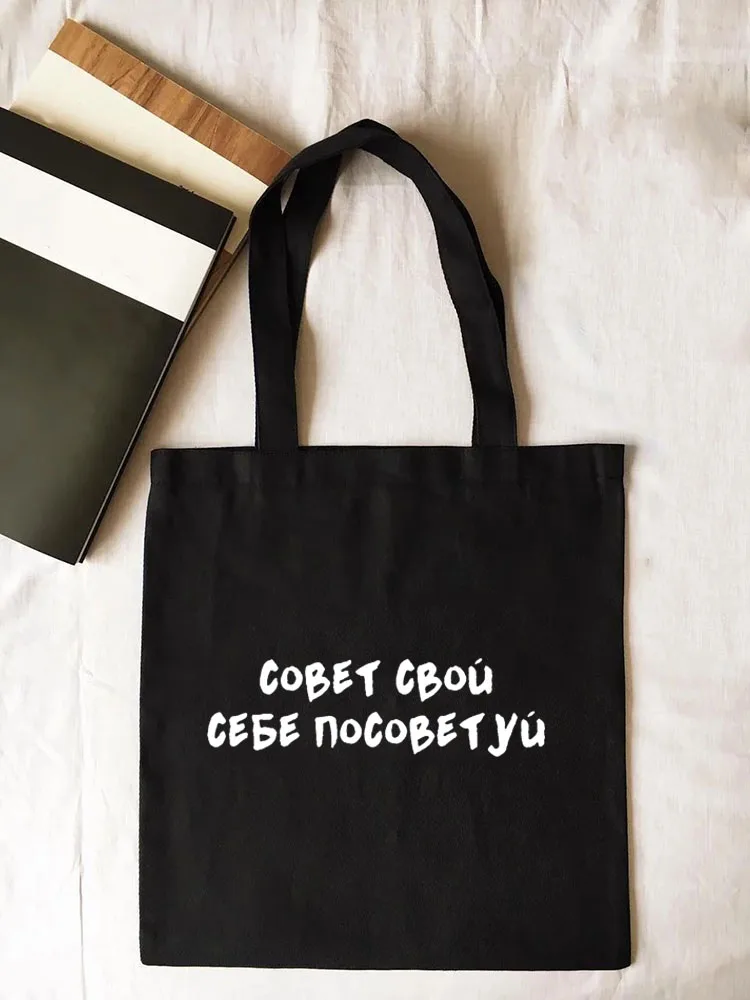 Женские сумки с русской надписью, Холщовая Сумка, шоппер, Женская эко-сумка, повседневная сумка для покупок, большая емкость