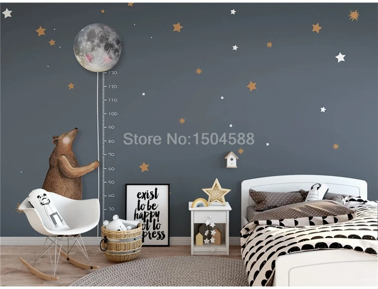 Пользовательские 3D Настенные обои мультфильм Медведь Луна измерение высоты звезда настенная живопись детская спальня фон Настенный декор Фреска