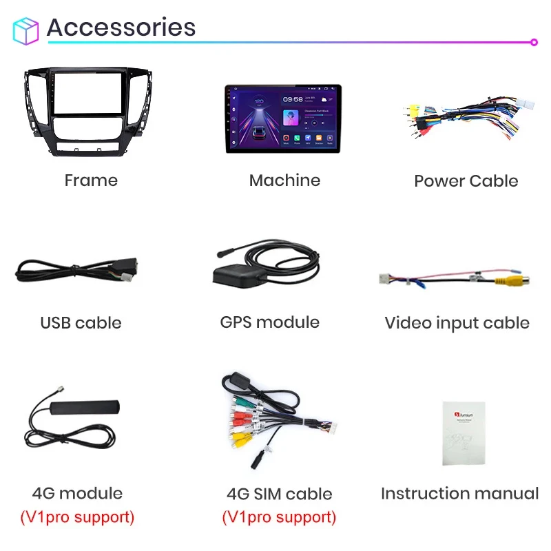 > Основные функции: Android 10,0 + 9 дюймов Дисплей Экран + 4 ядра 1,2 ГГц (восемь ядер 1,8 ГГц Dual Core опция) + DDR3 1 ГБ флэш-памяти (2 ГБ/4 ГБ/6 Гб опционально) + 16 Гб памяти (32 ГБ/64 Гб/128 Гб опционально) + WIFI (4G сеть опционально) + зеркальная связь + управление рулевым колесом + RDS/DSP (опционально)> Специальные функции:1. Штифт-штифт: Кабель питания Junsun radio' является штифтом для штифта, прост в установке;2. Встроенный Carplay/ Android авто: версия V1/V1Pro поддерживает, просто используйте кабель для подключения телефона, стабильный и простой в использовании;3. Поддержка подголовника: только поддержка версии Junsun V1;Дополнительные аксессуары> Голосовое управление AI: Просто скажите, что командное слово контролирует радио без рук, сделайте привод более безопасным> ADAS DVR камера, контроль давления в шинах, OBD2, внешний микрофон, RCA кабель;