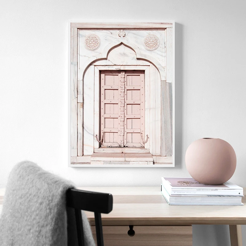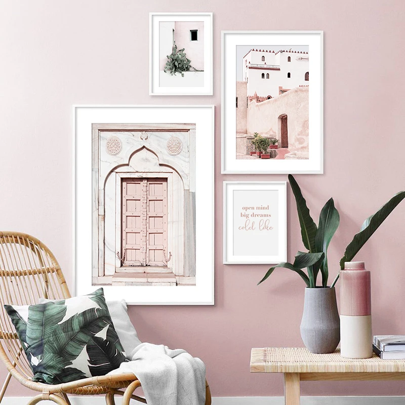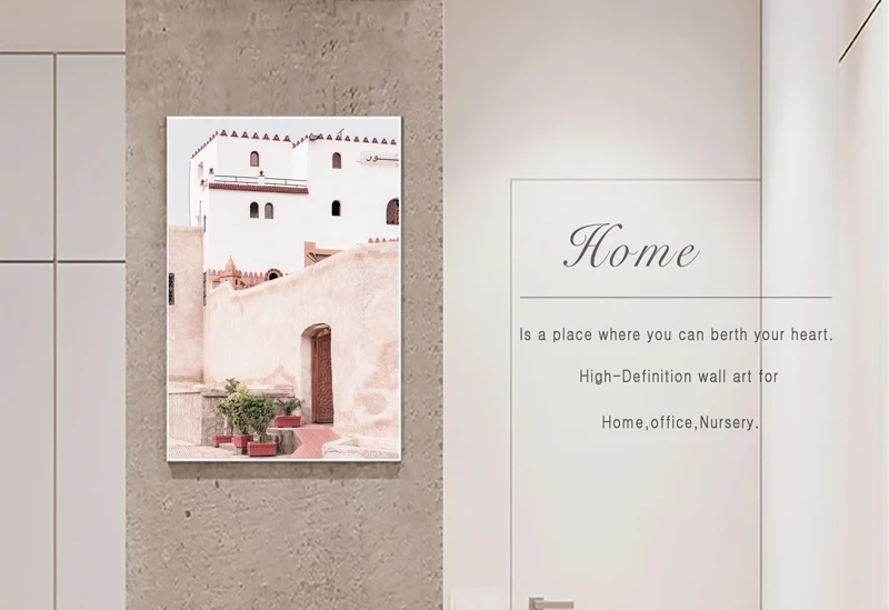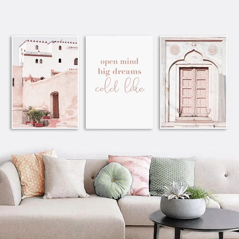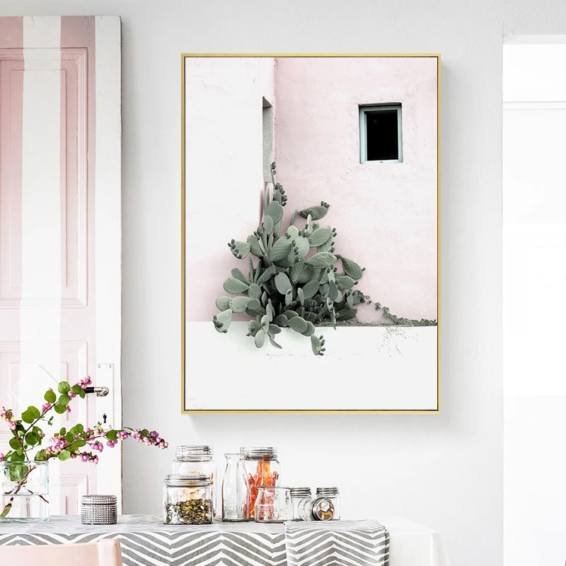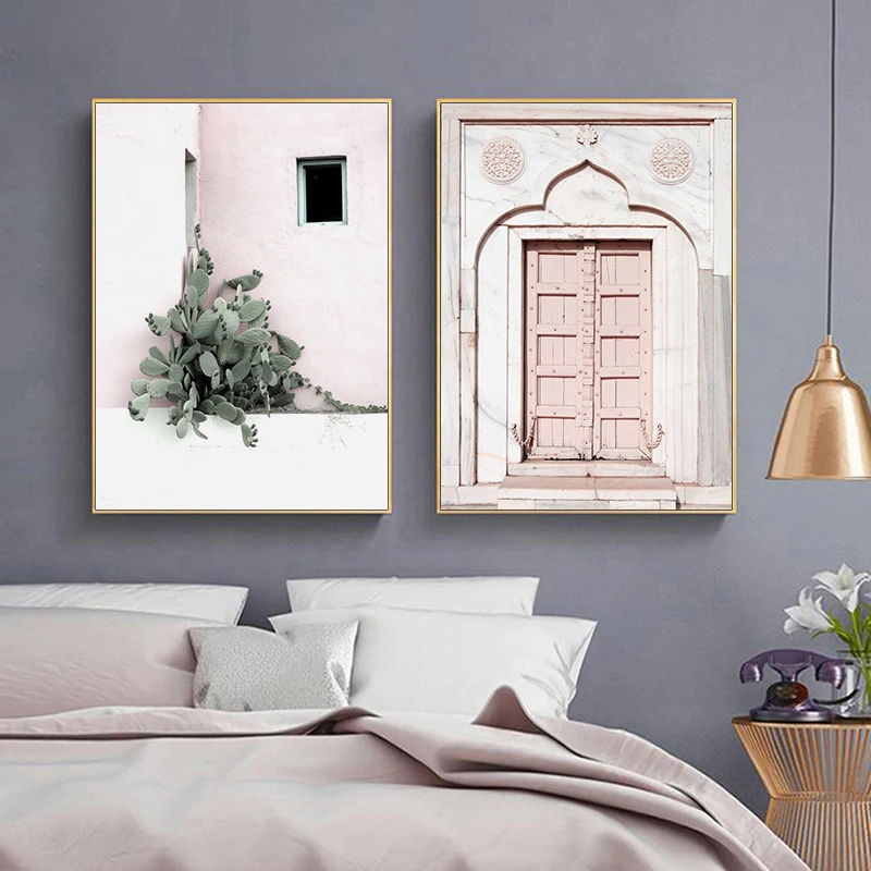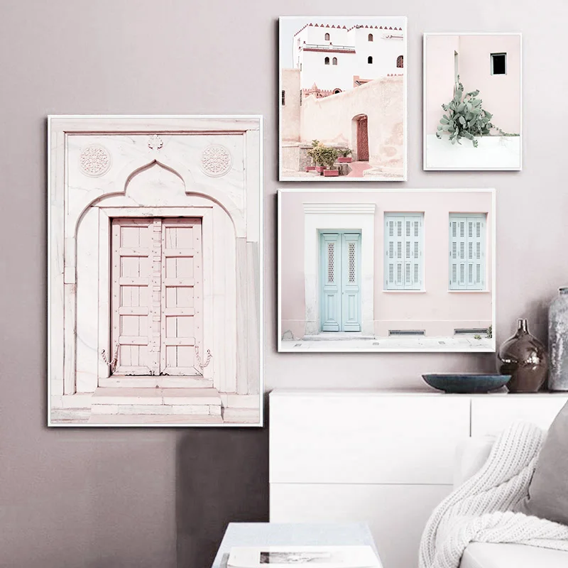 Постер с розовым окошком и дверью, пейзаж, Современная Картина на холсте, скандинавские постеры и принты, настенные картины для гостиной, домашний декор