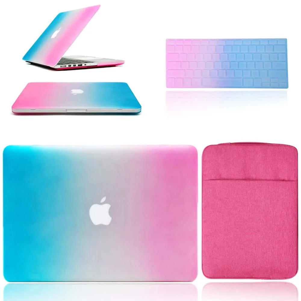 Новый жесткий чехол для ноутбука из ПВХ для Apple MacBook Air Pro Retina 11 12 13 15 дюймов + чехол для клавиатуры + сумка для ноутбука с карманом