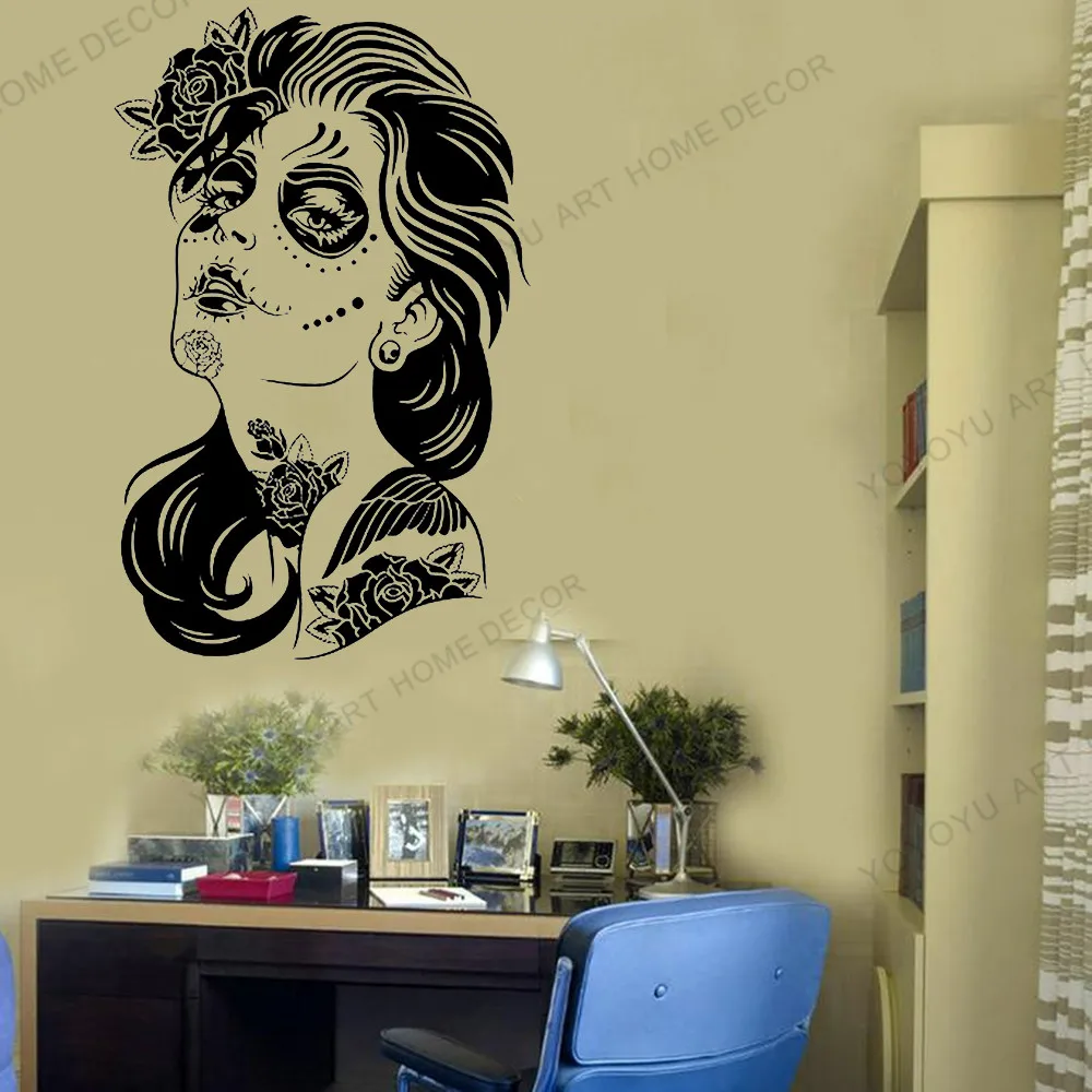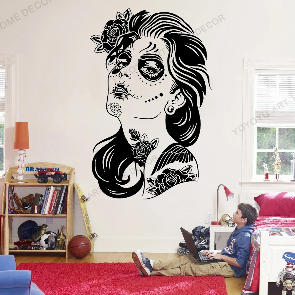 YOYOYU День мертвых настенные Розы девушка винил Стикеры дизайн интерьера сахара роспись с изображением черепа гостиная татуировки розы Q38