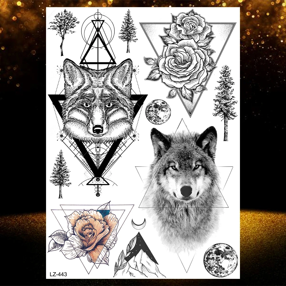 Олень геометрические поддельные татуировки тело искусство рука цветы акварель Временные татуировки для детей галактика одноразовые татуировки стикер космонавт