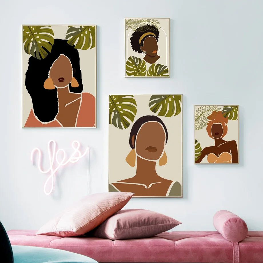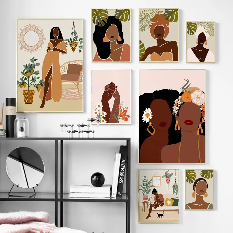 Богемный стиль Африканский цветок девушка тропический Лист настенная Картина на холсте скандинавские постеры и принты настенные картины для гостиной