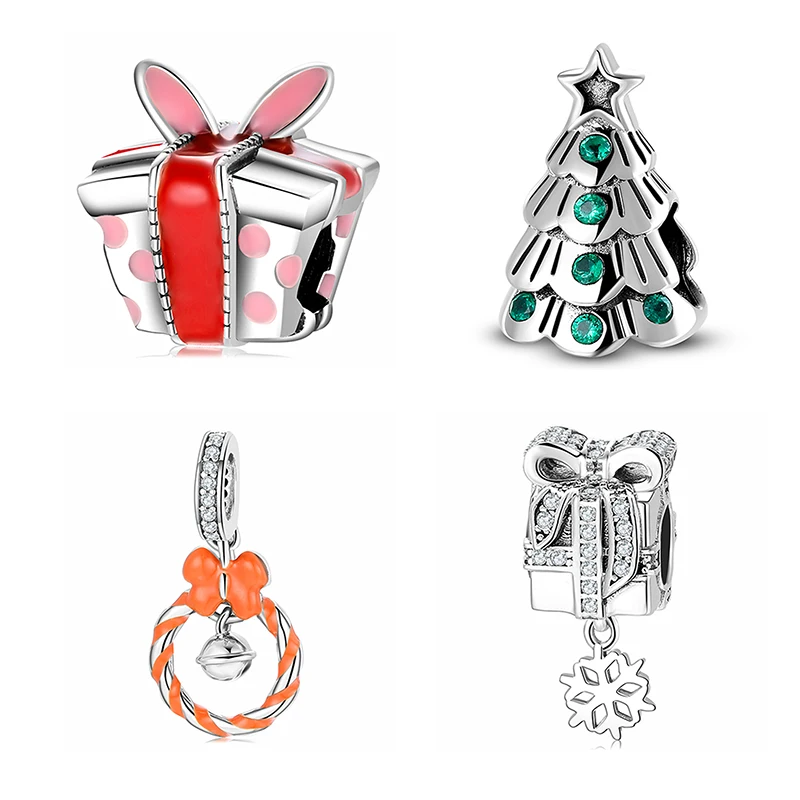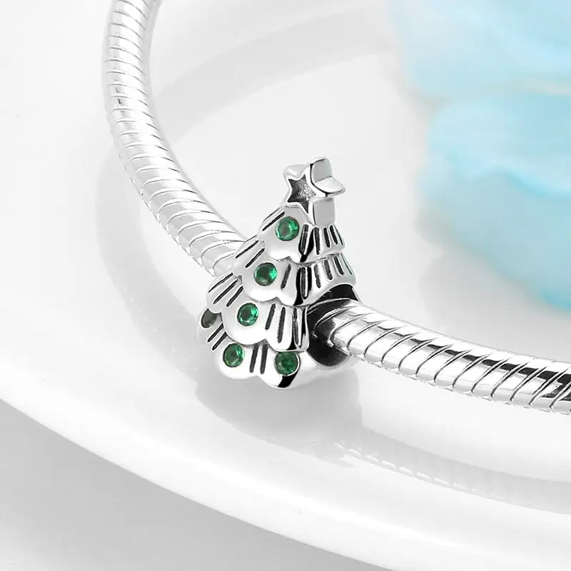 925 Серебряная Рождественская елка с Зеленые Бусины Подвески подходят для европейских Браслеты Рождественский подарок для браслетов серебро 925 ювелирные украшения