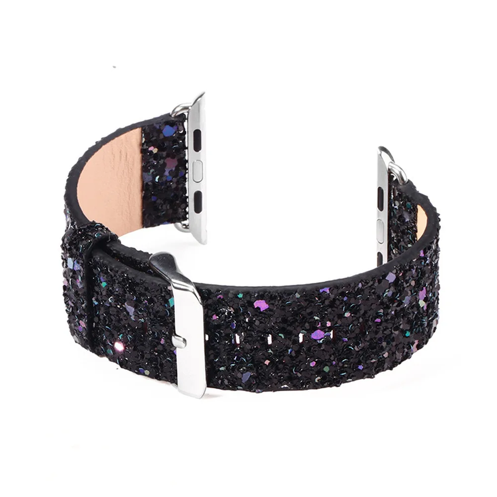 Блестящий мощный браслет из искусственной кожи для наручных часов Apple Watch Band Series 54321 44 40 мм 38 42 мм