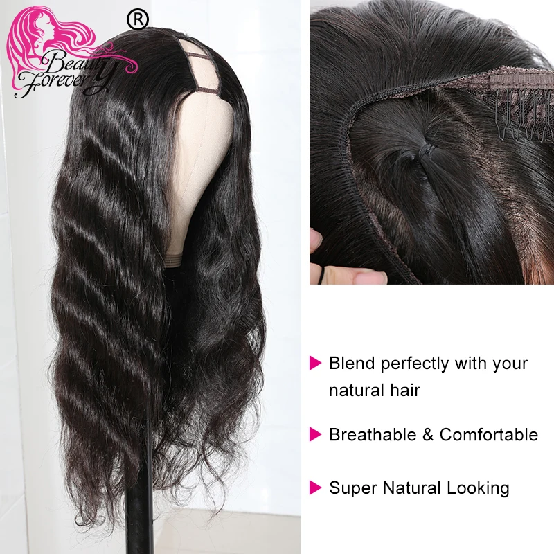 Парики Beauty Forever безклеевые с U-образной волной, 150% плотность, бразильские человеческие волосы без повреждения кутикулы, средние безупречные парики