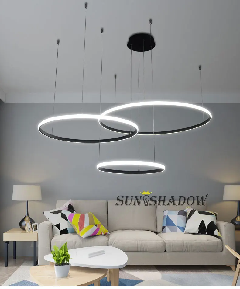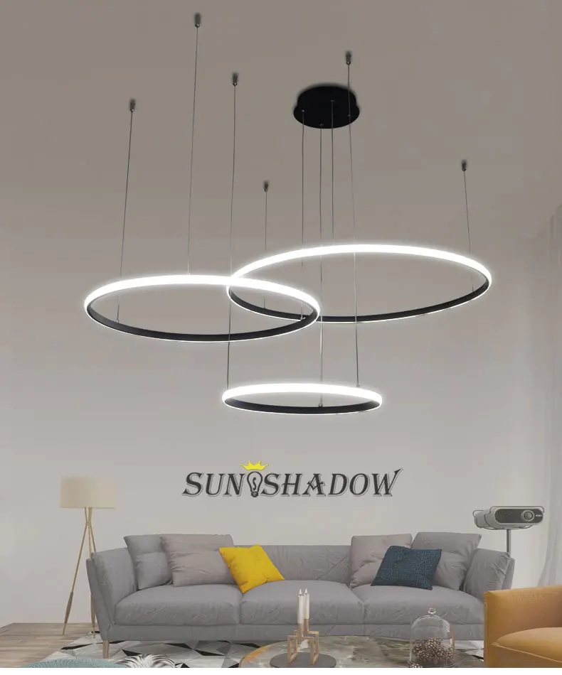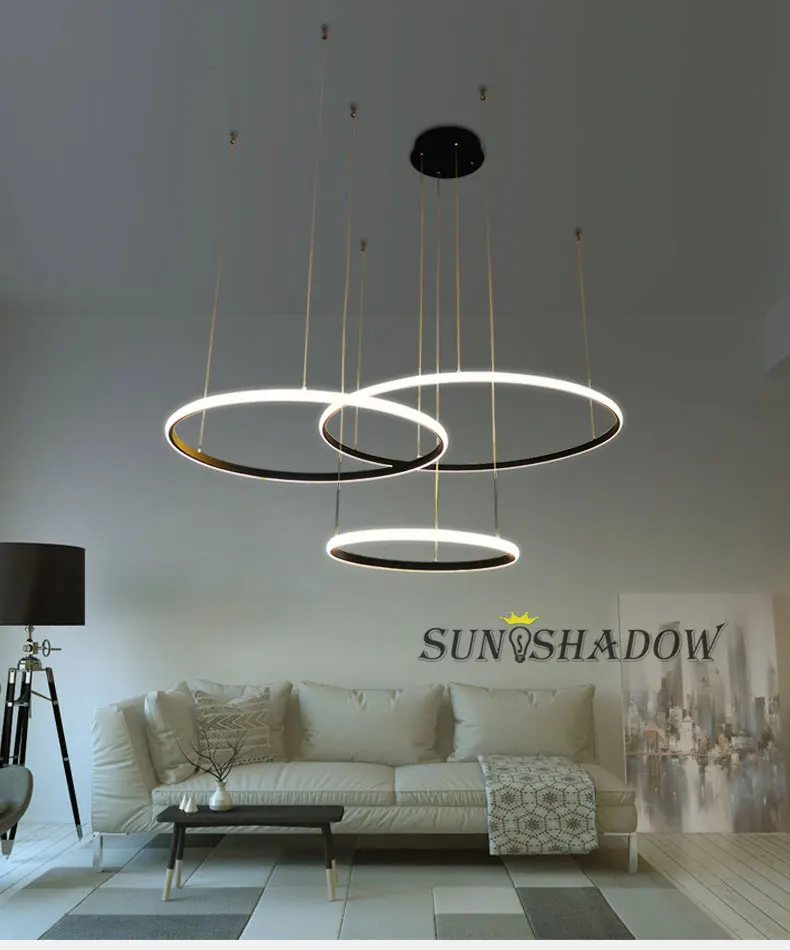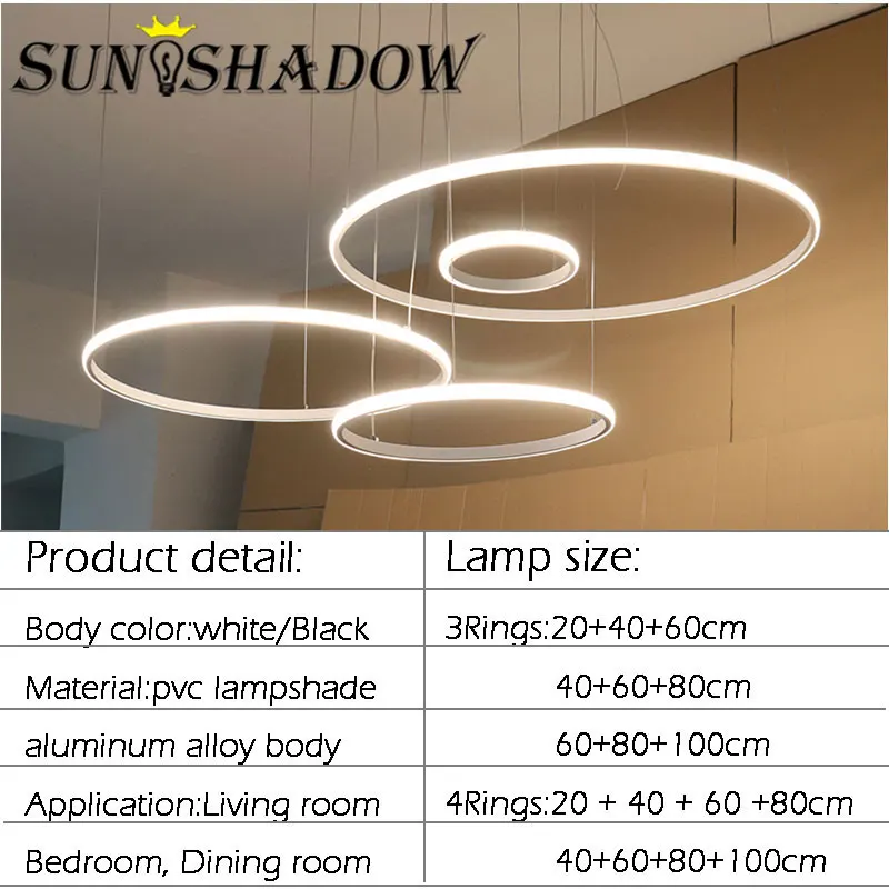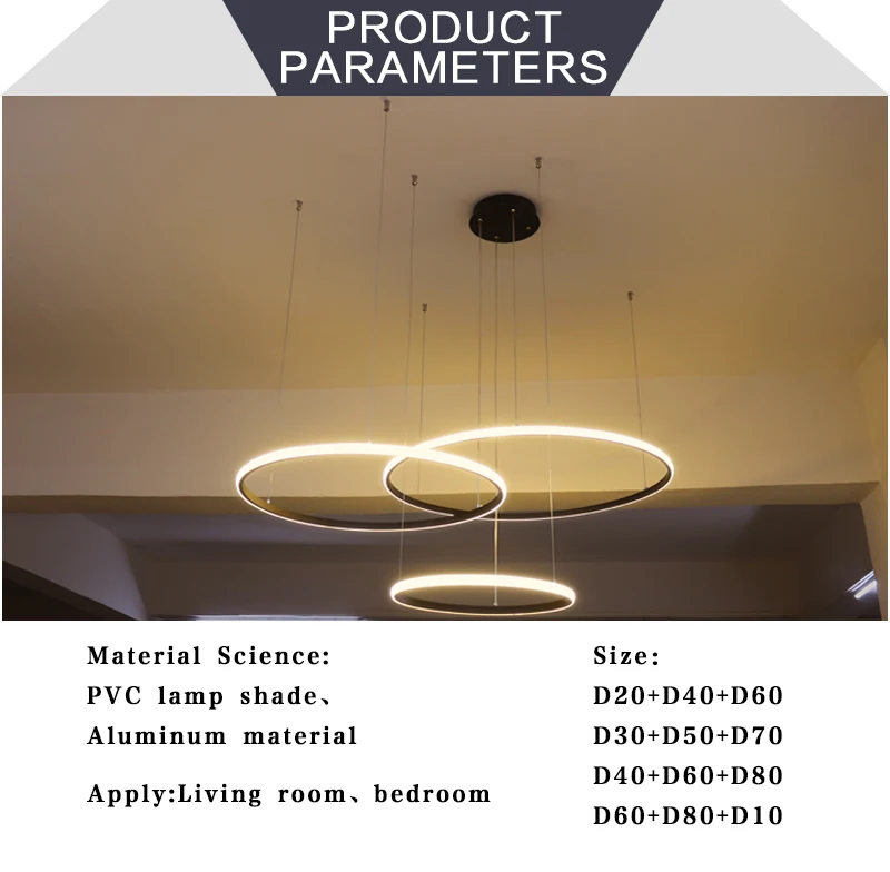 Вход: AC110V 220VЦвет корпуса: черный, белый, золотойРазмер лампы: 20 40 60 см/3 кольца 40 60 80 см 3 кольца/20 40 60 80 см/4 кольцаИзлучаемый: холодный белый теплый белый с регулируемой яркостьюМатериал: ПВХ абажур корпус из алюминиевого сплаваПрименение: гостиная столовая спальня кухня исследованиеГарантия: один год