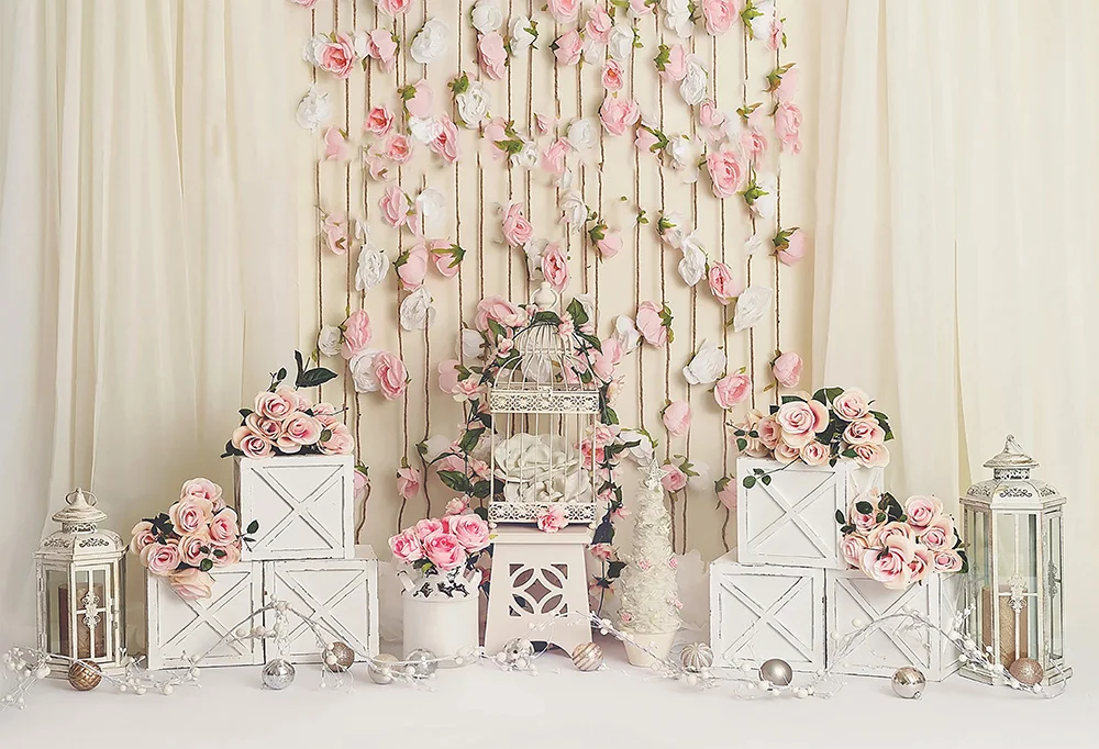 Фон для фотосъемки новорожденных с изображением розовых цветов и де...