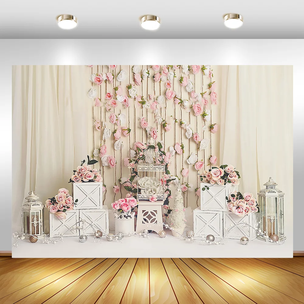 Фоны для фотосъемки Mehofoto для малышей, с цветочным узором с розовыми цветами
