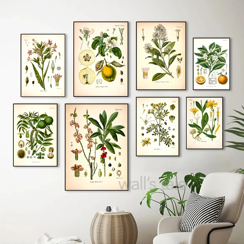 Винтажные ботанические постеры и печатные настенные картины для кухни, лекарственные растения койлера, Картина на холсте для гостиной, домашний декор